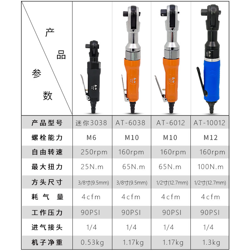 3 8 Mini Ratch Wrench AT-3038 3 8 Pneumatic Ratch Wrench AT-6038 1 2 Pneumatic Ratch Wrench AT-6012 1 2