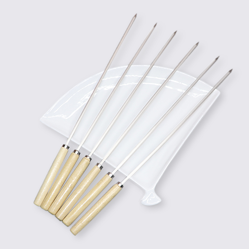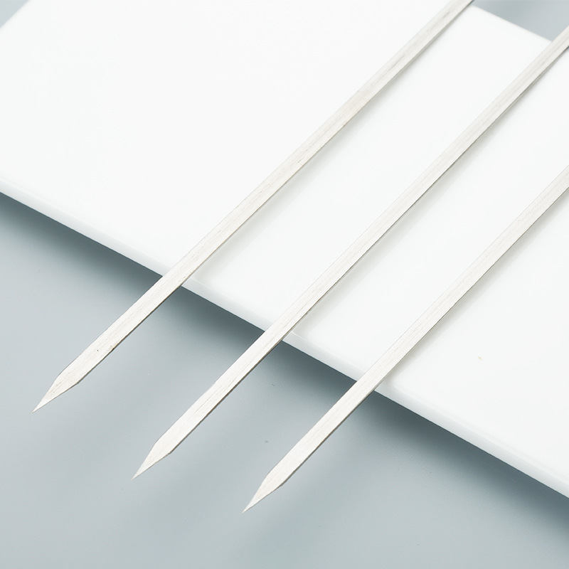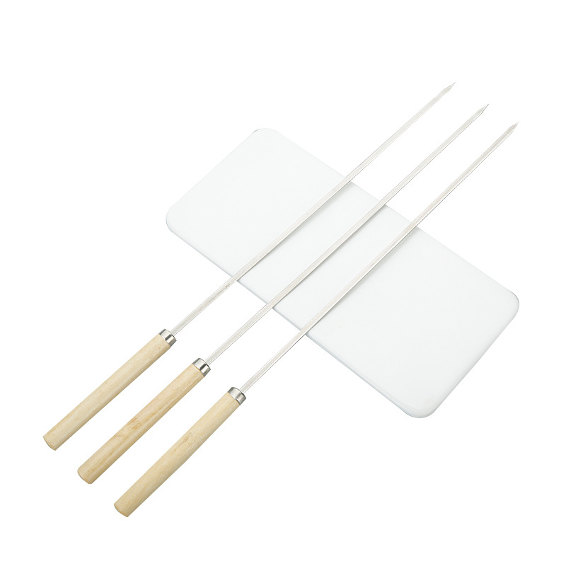 Stainless steel wooden handle barbecue stick wooden handle flat stick round barbecue needle lamb skewer stick
