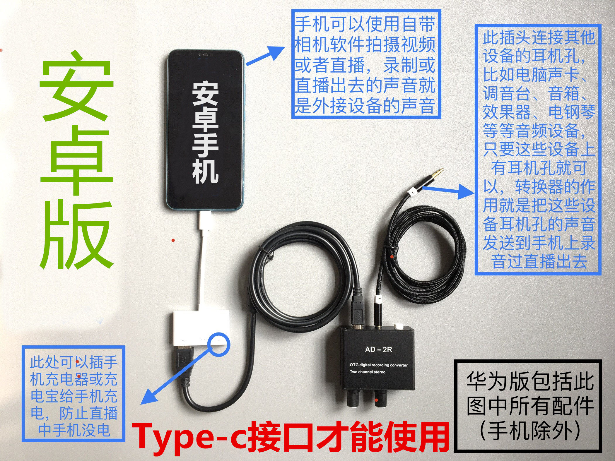 AD2R Apple Android mobile phone stereo converter inside recording live No. 1 speaker to ring electronic organ Huawei