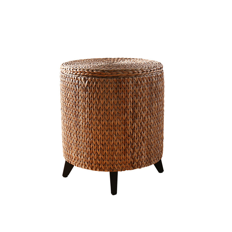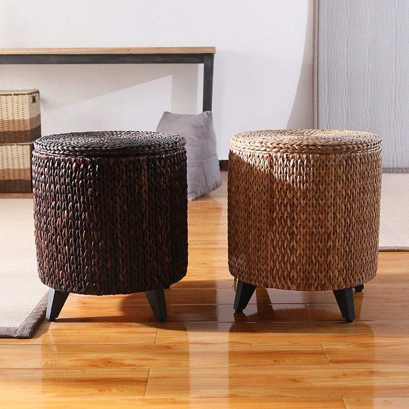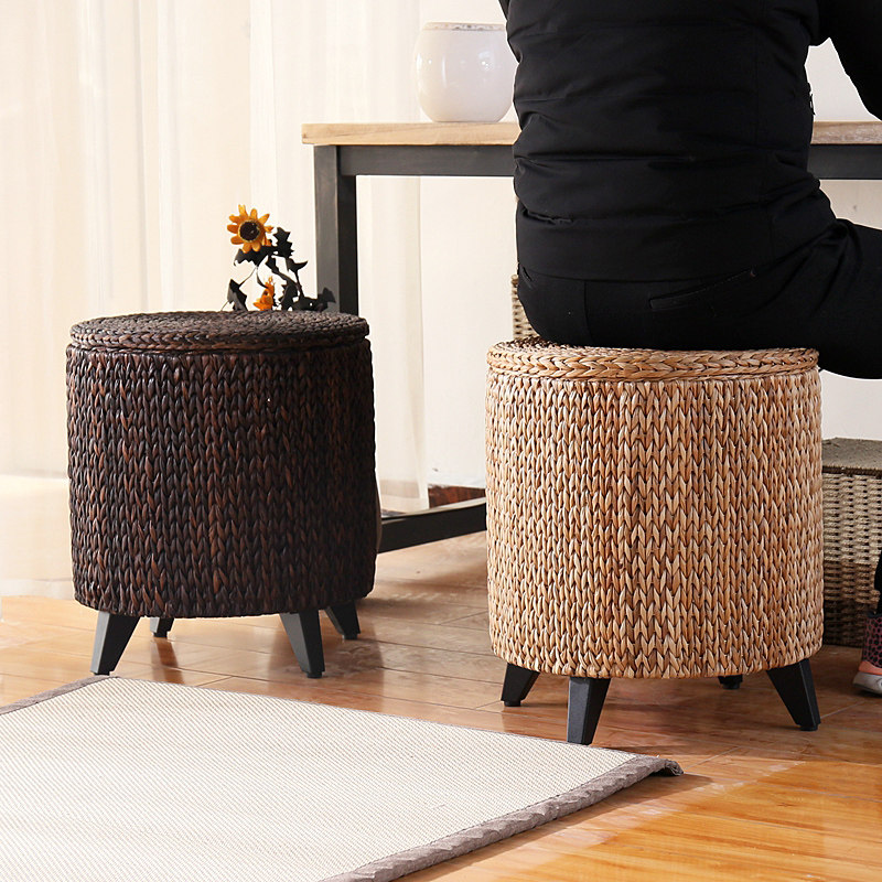 Nordic minimalist rattan storage stool storage stool round solid wood rattan shoe stool storage box pastoral rattan stool
