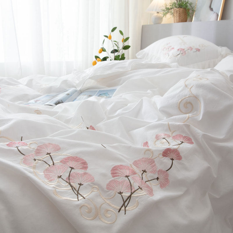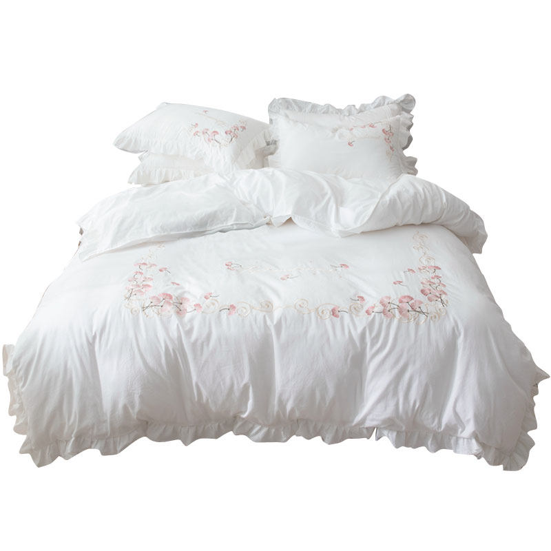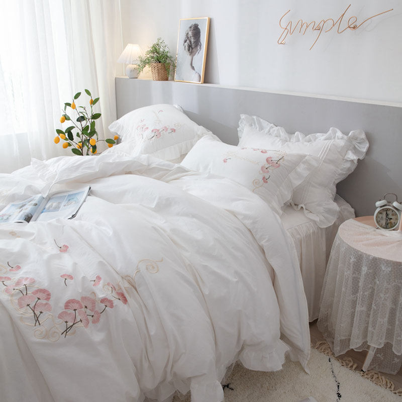 FULL COTTON PRINCESS WIND BED SKIRT FOUR PIECES OF KIT MINIMALIST BED COVER TYPE EMBROIDERED PURE COTTON ANTI-SLIP BED COVER LACE QUILT COVER 4 PIECES