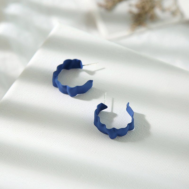 (61) Blue Wavy Ear Rings Silver Pin (61) Blue Wavy Ear Clip