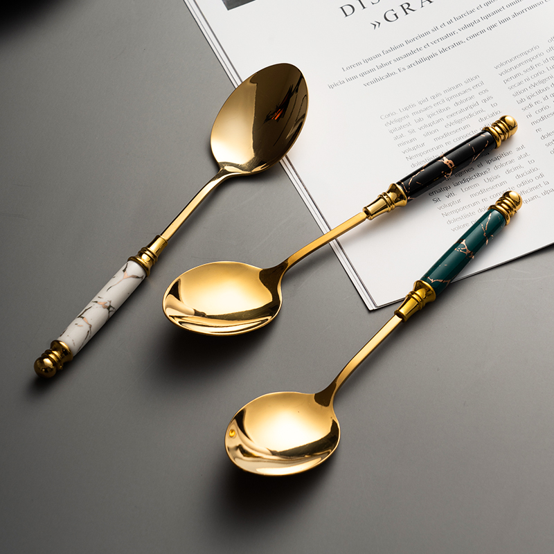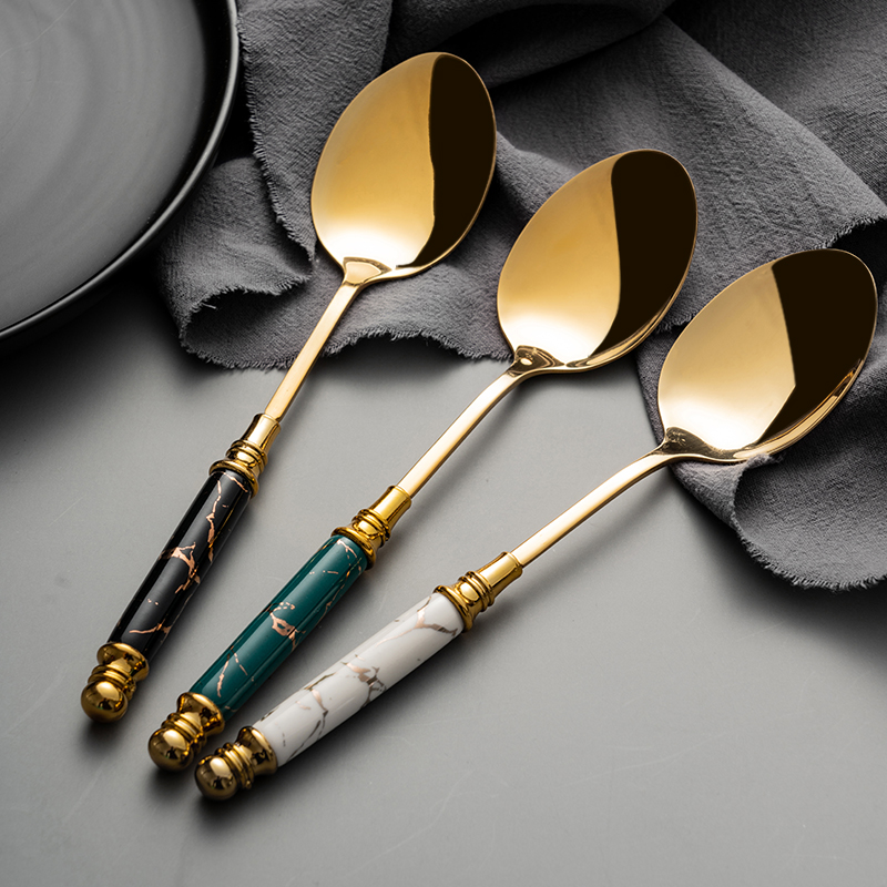 Golden spoon European high value stainless steel spoon creative personality rice spoon ceramic long handle exquisite vintage spice spoon