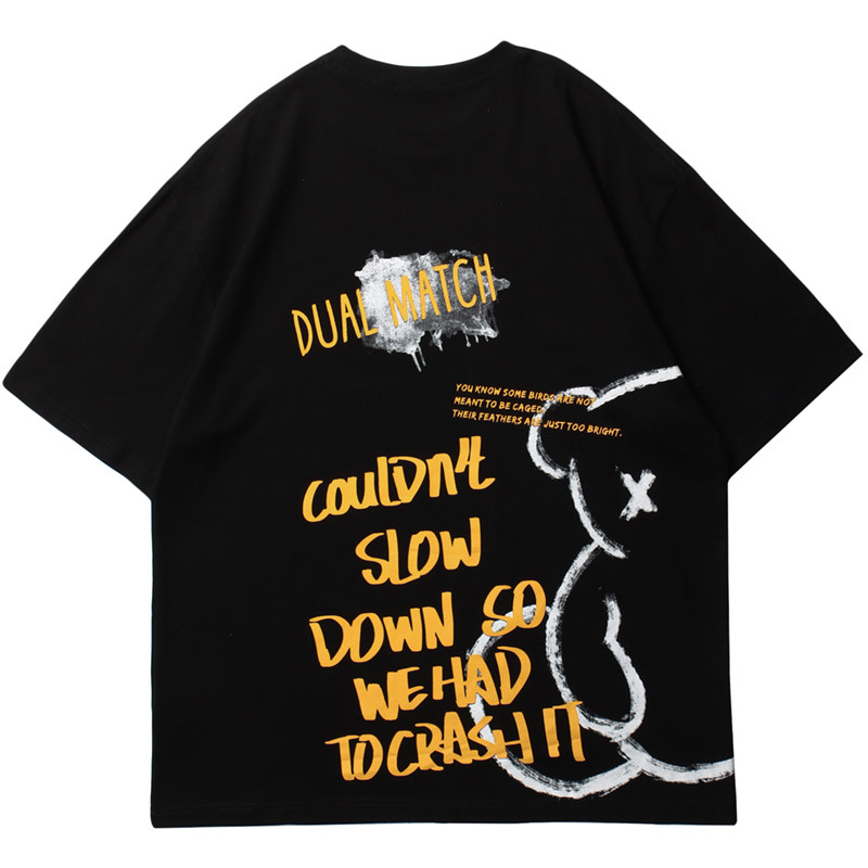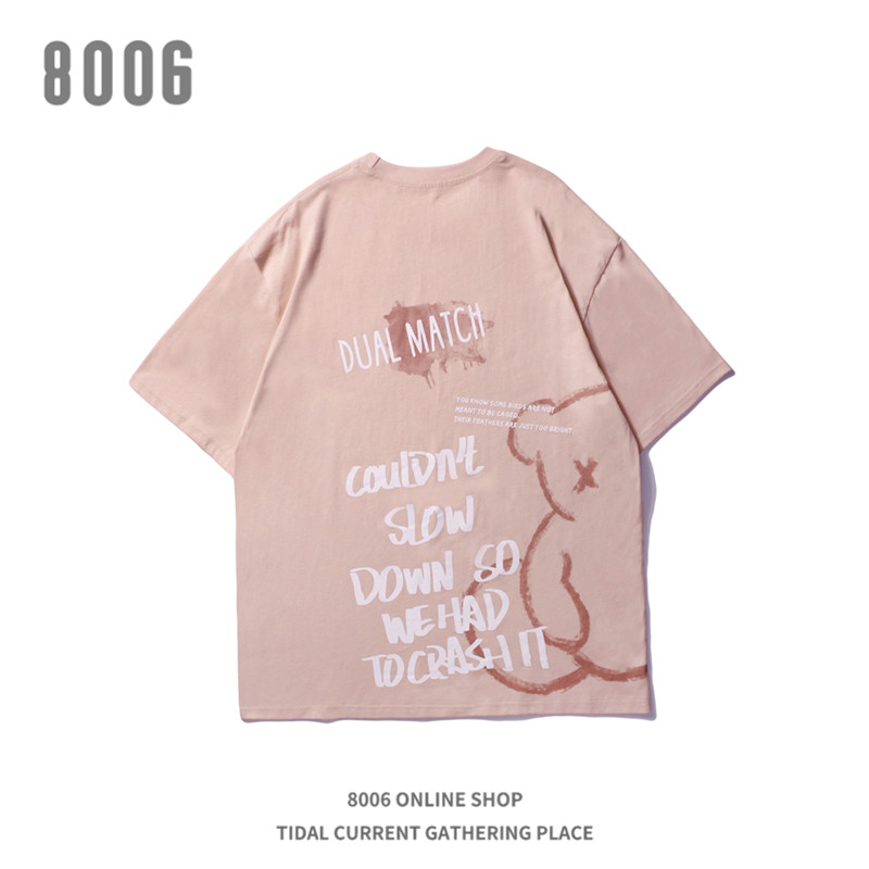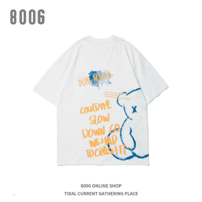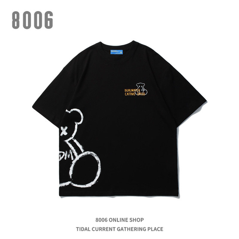 8006 short sleeve male tide card trendy hip hop street loose oversize short sleeve male and female couple small bear graffiti