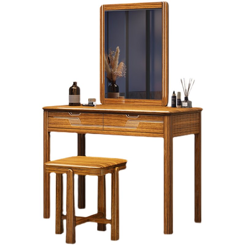 Black gold wood Chinese style solid wood dressing table small apartment bedroom light luxury dressing table with mirror integrated simple dressing table