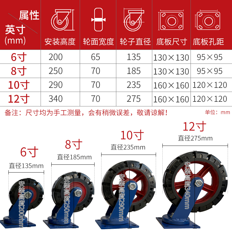 6 inch directional wheel 6 inch universal wheel 6 inch brake wheel 8 inch directional wheel 8 inch universal wheel 8 inch brake wheel 10 inch directional wheel 10 inch directional wheel 10 inch universal wheel 10 inch brake wheel 12 inch directional wheel 12 inch universal wheel 12 inch brake wheel 6 inch set -2 directional + 2 million direction 6 inch set - 2 directional + 2 brake 8 inch set - 2 directional + 2 million direction 8 inch set - 2 directional + 2 brake 10 inch set - 2 directional + 2 million directional 10 inch set - 2 directional + 2 directional set - 2 directional + 2 directional set - 2 directional + 2 brake