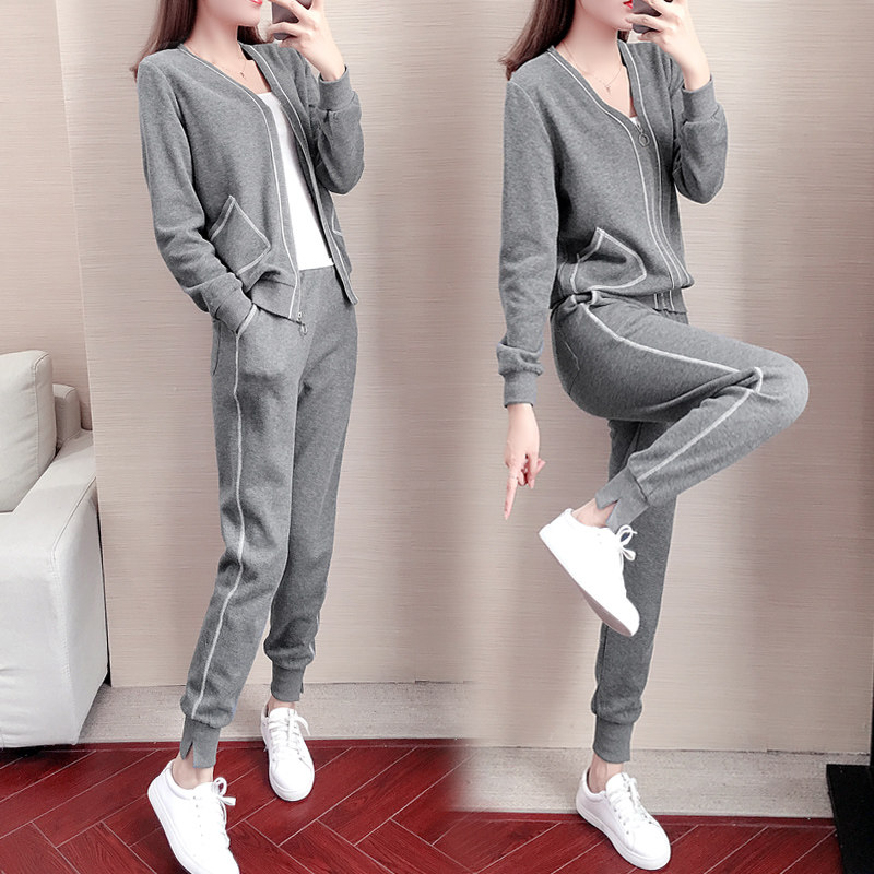 Tide Card Casual Sports Suit Woman 2022 Spring new cardiovert V collar sweatpants garnter thickened with two sets