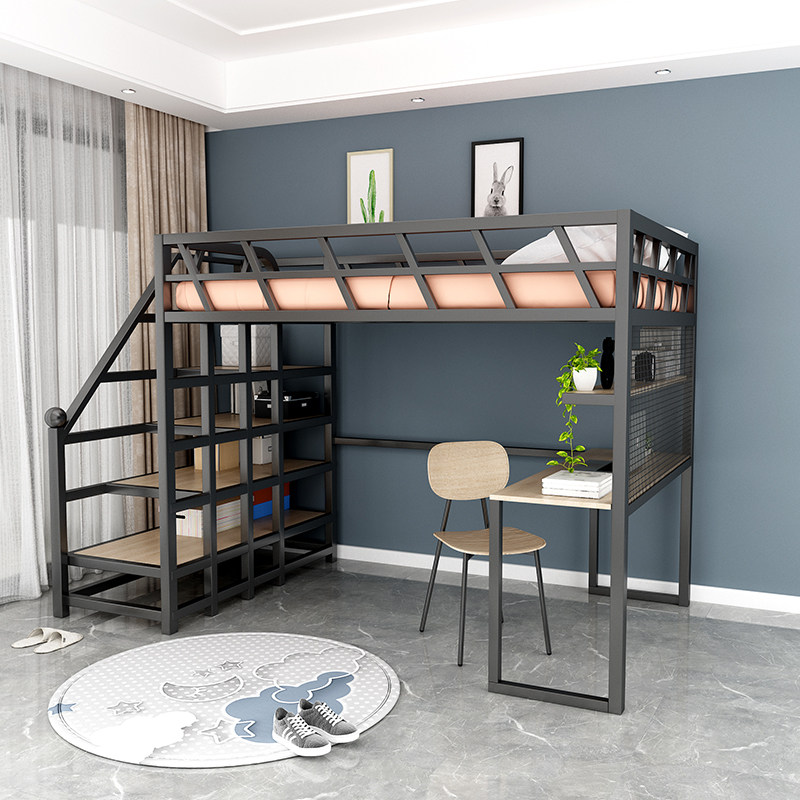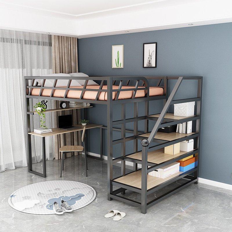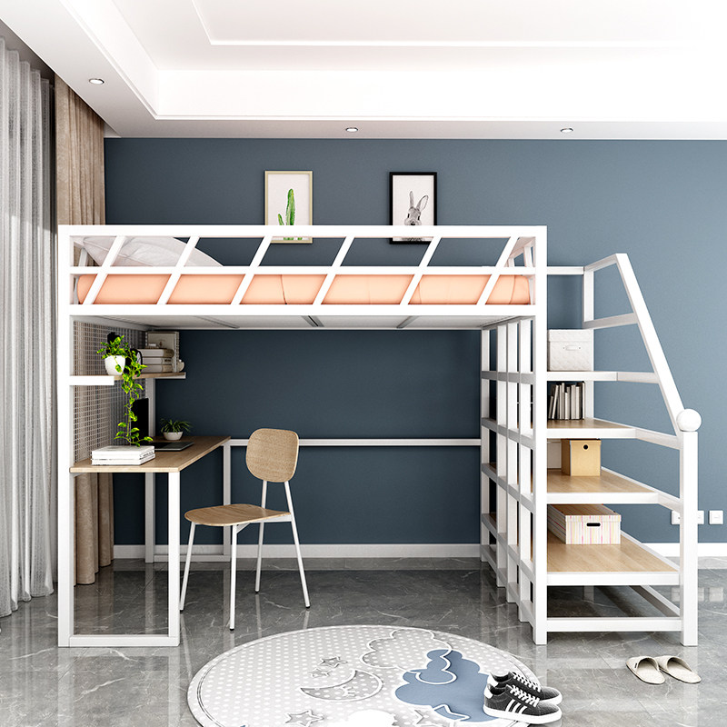 Space-saving small apartment high and low bed bed under the table multi-functional wrought iron elevated bed double iron frame bed