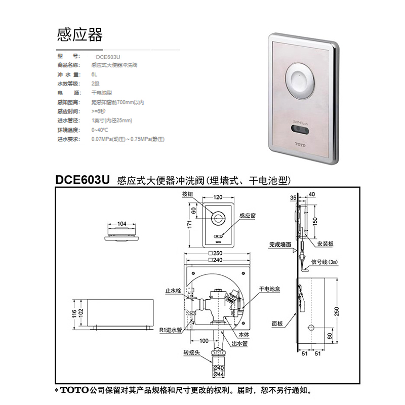 (spot) DC603VLR Manual flushing valve (spot) DC603VLFR Pedal Flushing Valve (Spot) DCE603U Dry Cell with induction flushing valve