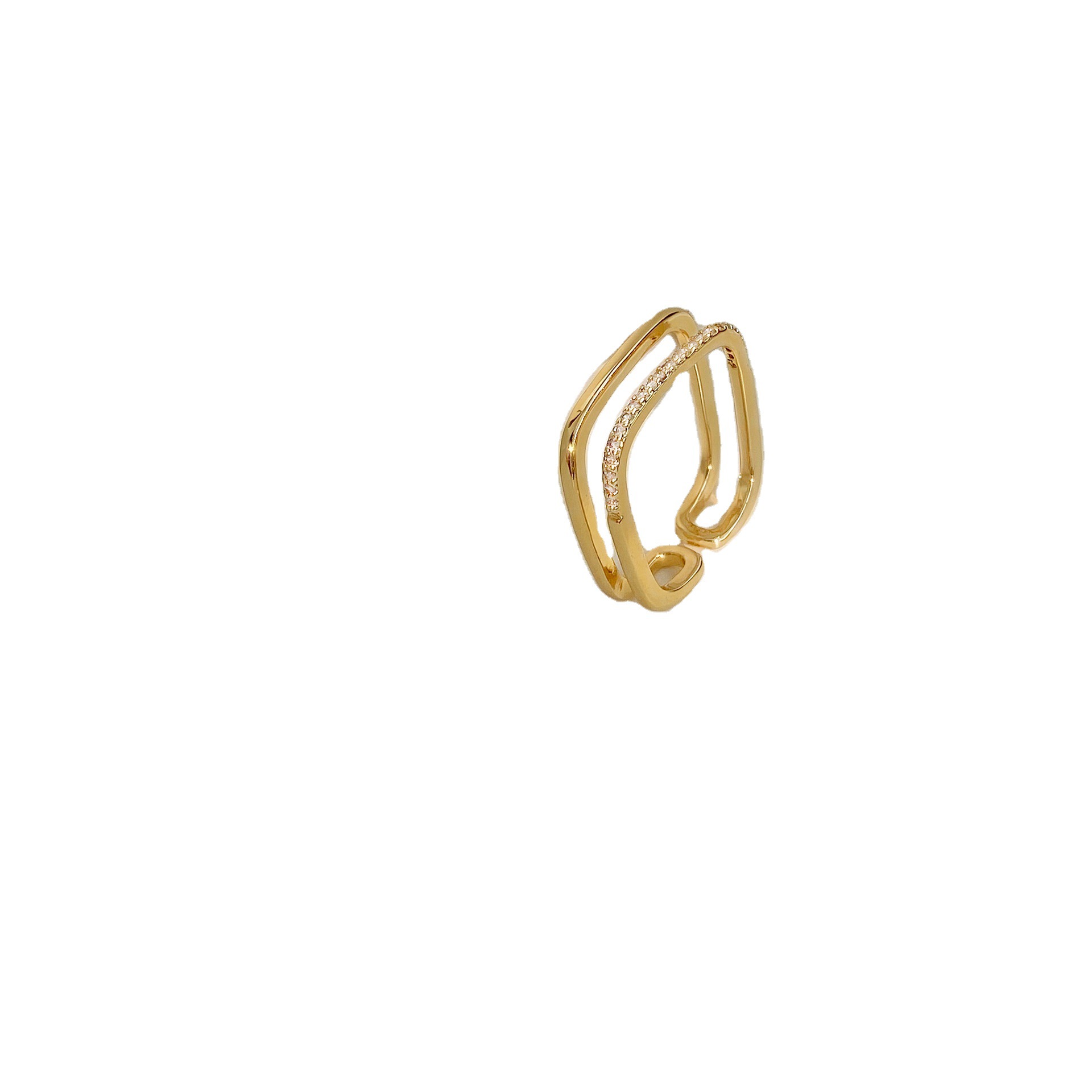 HE new small square ring square ring women's fashion personality light luxury zircon index finger ring square diamond cold wind ring