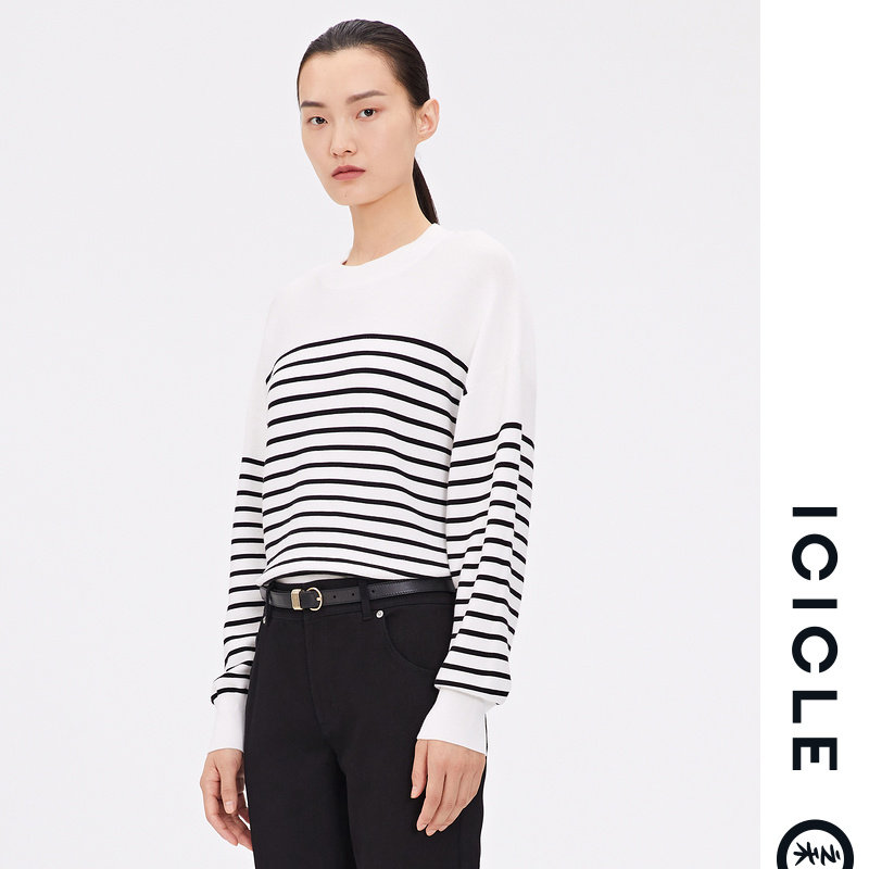 ICICLE's Wo Women's Fashion 2022 New Ultra-fine Cotton Fashion Stripes Brief Commute Round Neckline Knit Hooded Cardiovert
