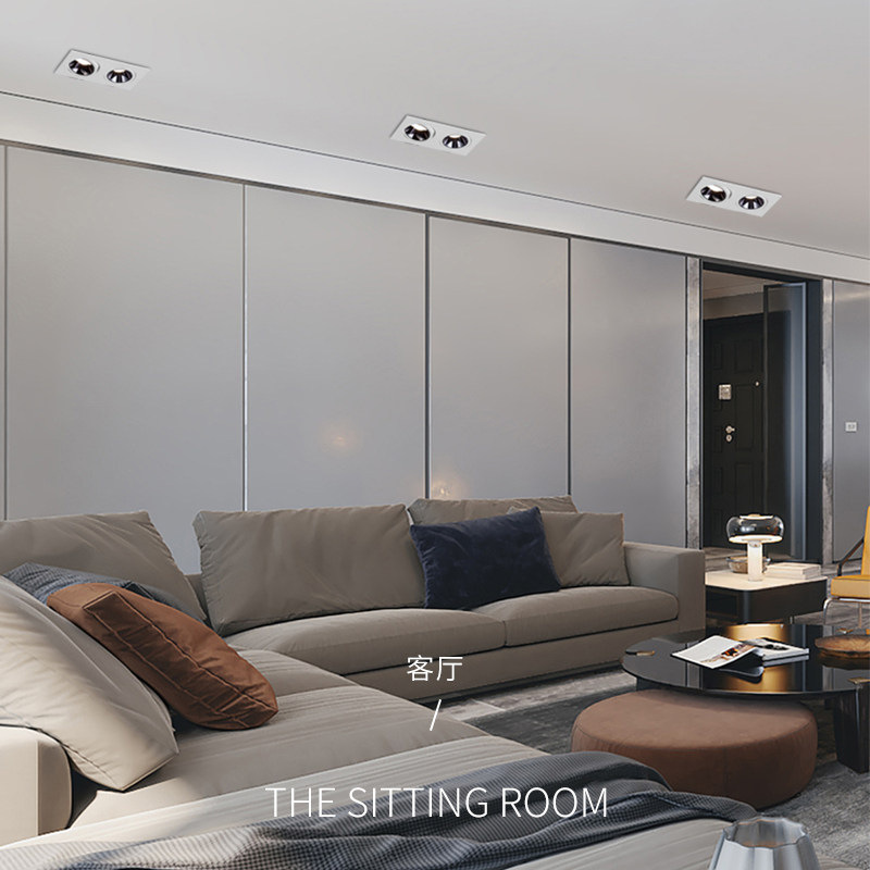 LED double-head square spotlight embedded household hole lamp black double-head anti-glare without main lamp design
