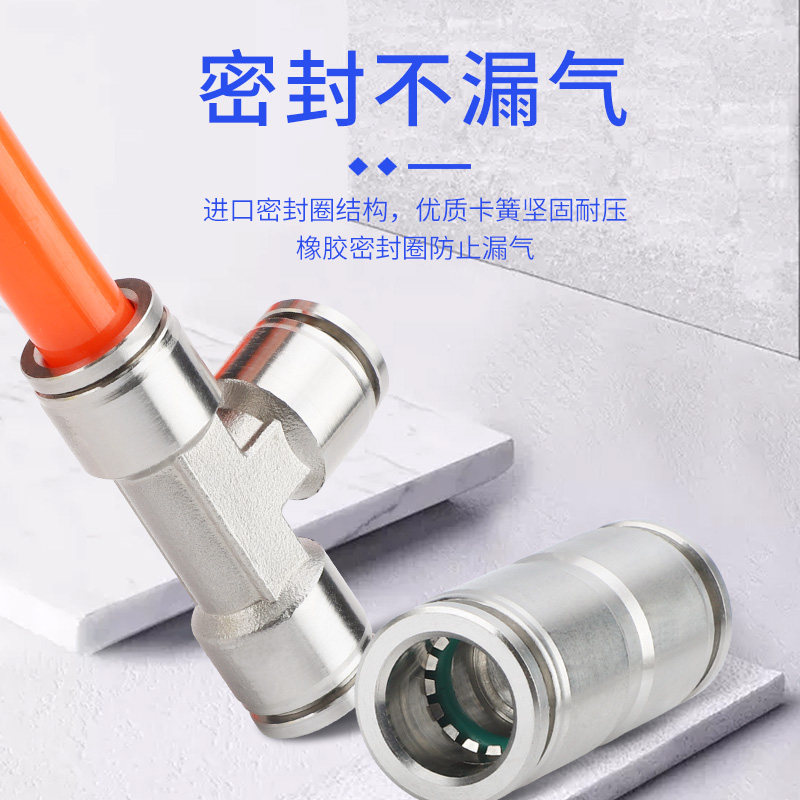 304 stainless steel high-pressure trachea quick-plug straight-through PU4 three-way PE6 PY8 elbow PV10 four-way PZA12 connector
