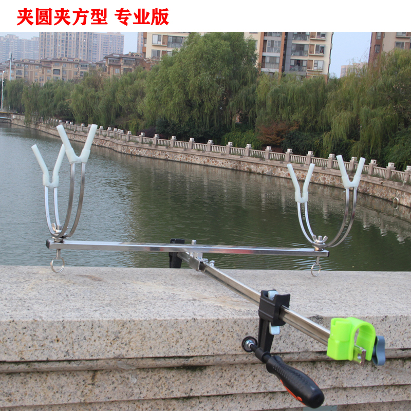 Raft fishing bracket bridge fishing rod multi-function raft rod wheel metal double rod stainless steel frame fishing rod boat fishing rack rod fort