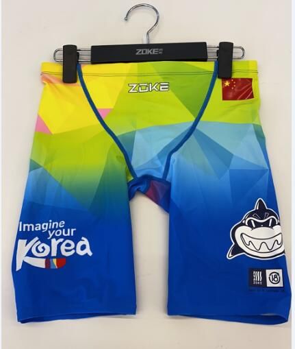 2023 New Zuku Men Blue Yellow Shark Professional Training Competition Five - Point Swim Pants