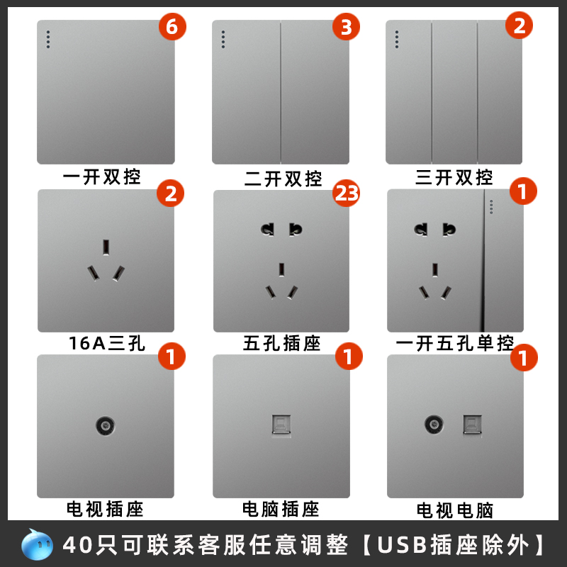 International electrician switch socket panel package home 86 type wall two three plug 5 five hole multi-control power set