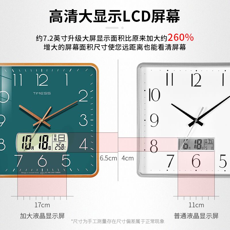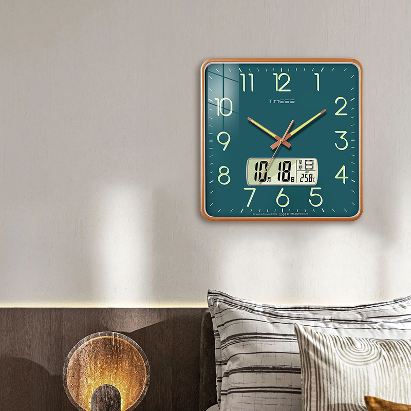 Watch wall clock Living room household fashion square clock Radio clock Luminous wall hanging creative perpetual calendar Light luxury quartz clock