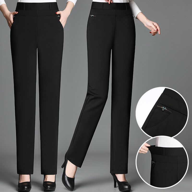 Mom pants loose straight pants 2021 spring new middle-aged people's size high-waisted middle-aged women's pants wear outside