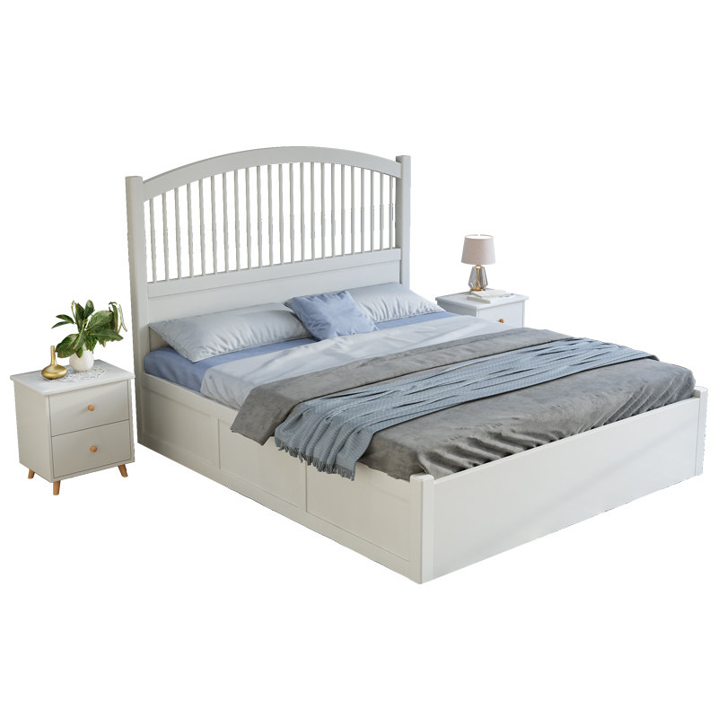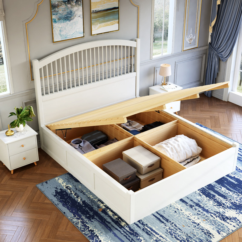 Walnuts Wood Solid Wood Bed Modern Minimalist Master Bedroom Single Double Light Extravagant Wedding Bed Case White American Air Pressure Storage Bed-Taobao