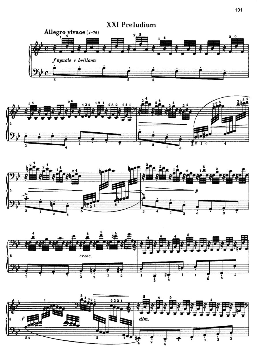 Bach's 21 Preludes and Fugues in B-flat Major in Well-Tempered BWV866 Piano Score with Fingering Original - 4 Pages