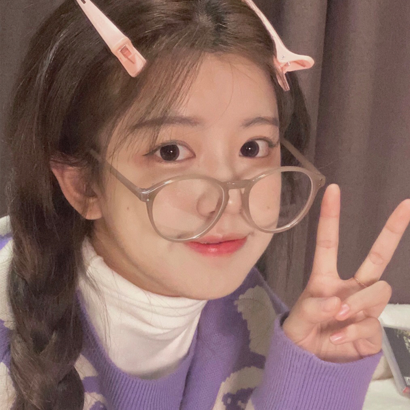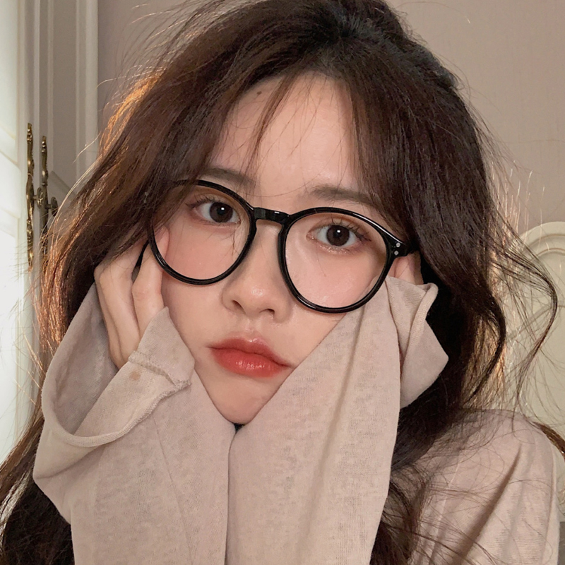 Milk Tea Color Round Frame Glasses Myopia women with degree plus astigmatism Yan Han version Chains Chauvetulins Wind net red frame