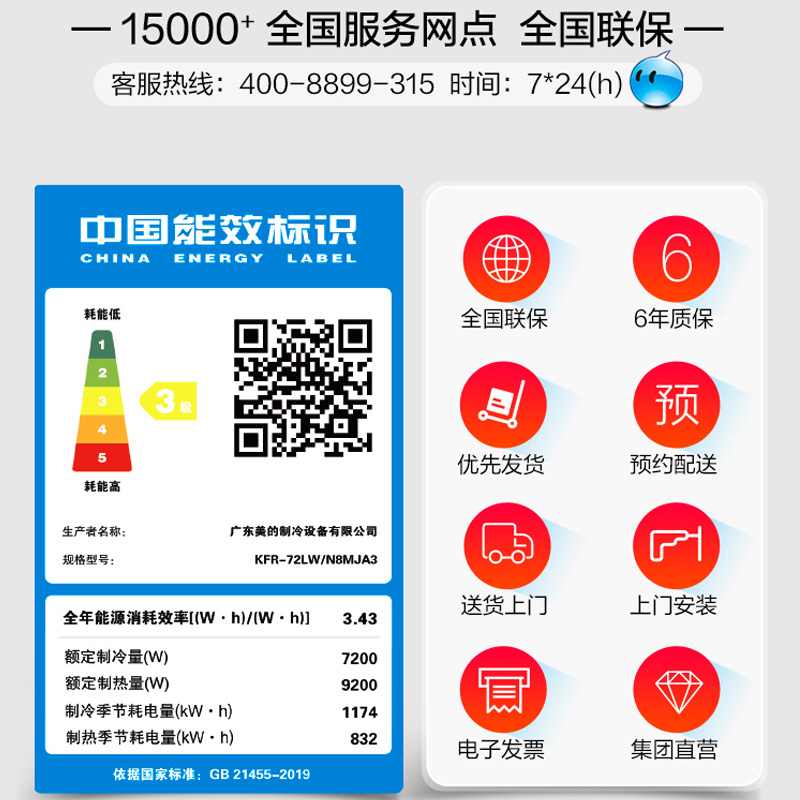 Midea large 3-horse vertical cylindrical living room variable frequency air conditioning cabinet smart energy appliances household heating and cooling store N8MJA