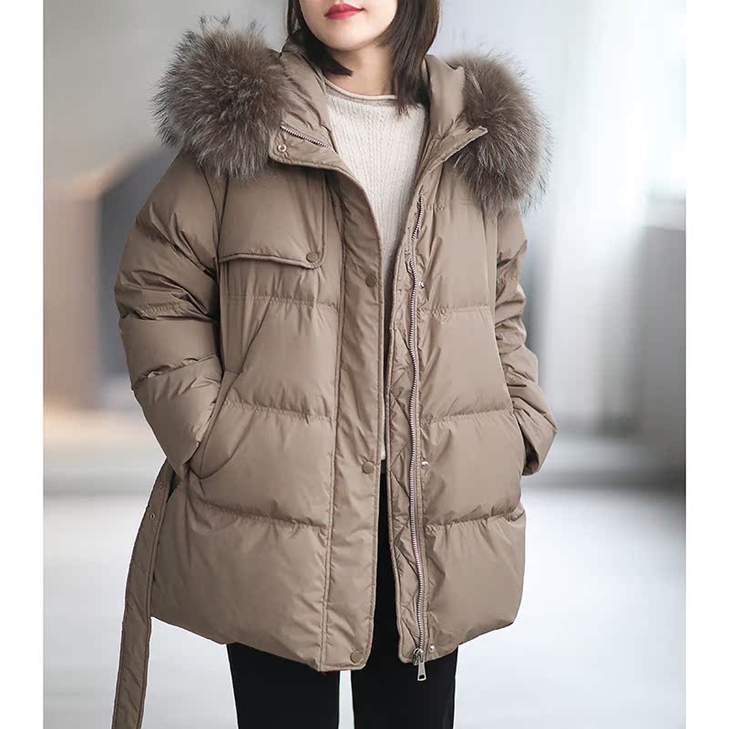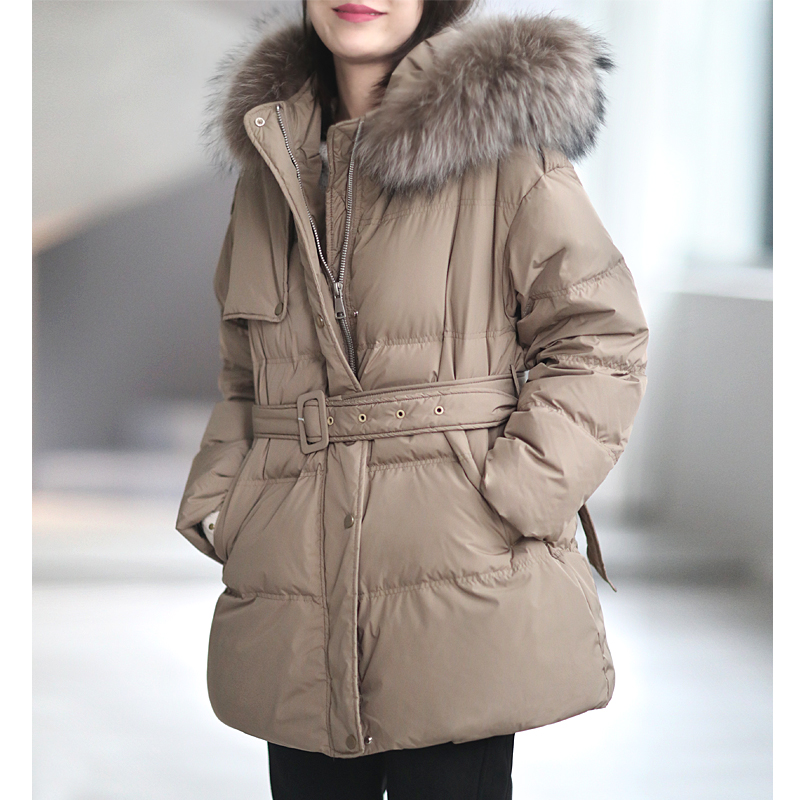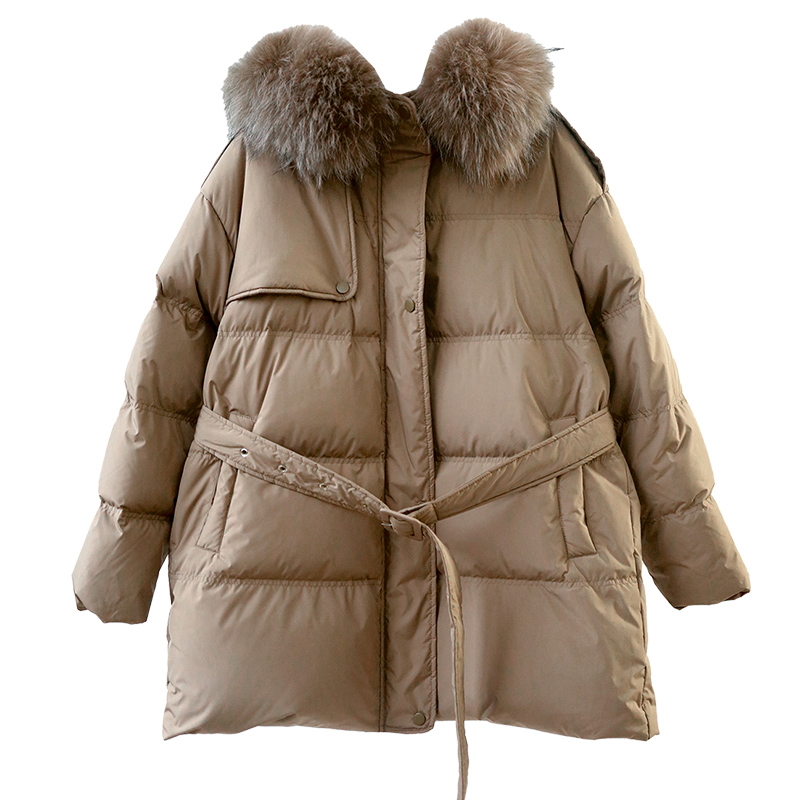 Xiao said the foreign pie doesn't fall in the middle and long version 90 white duck suede big fur collar lacing down clothes jacket woman thickened winter