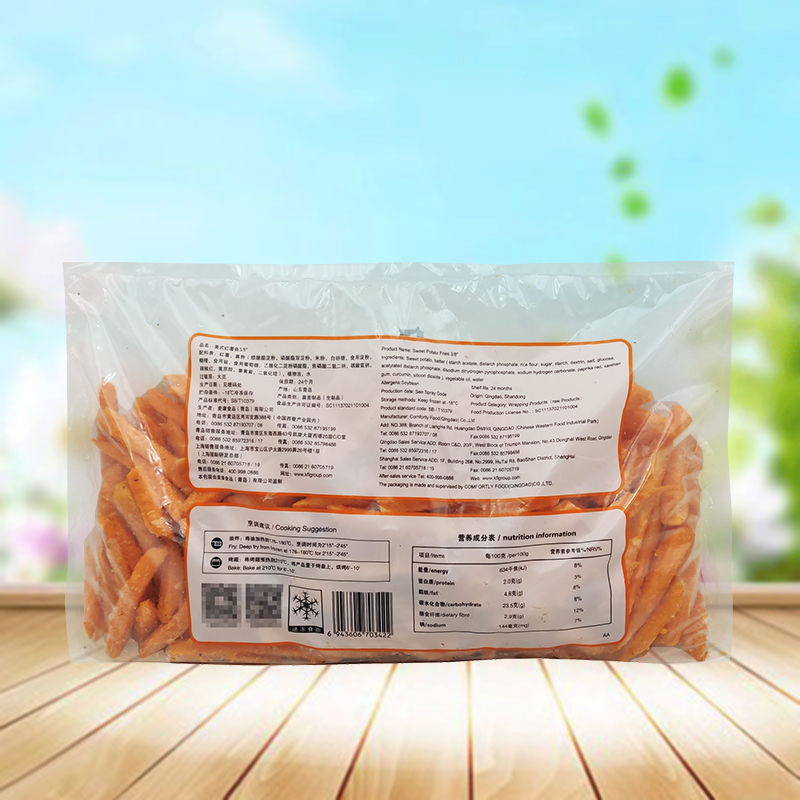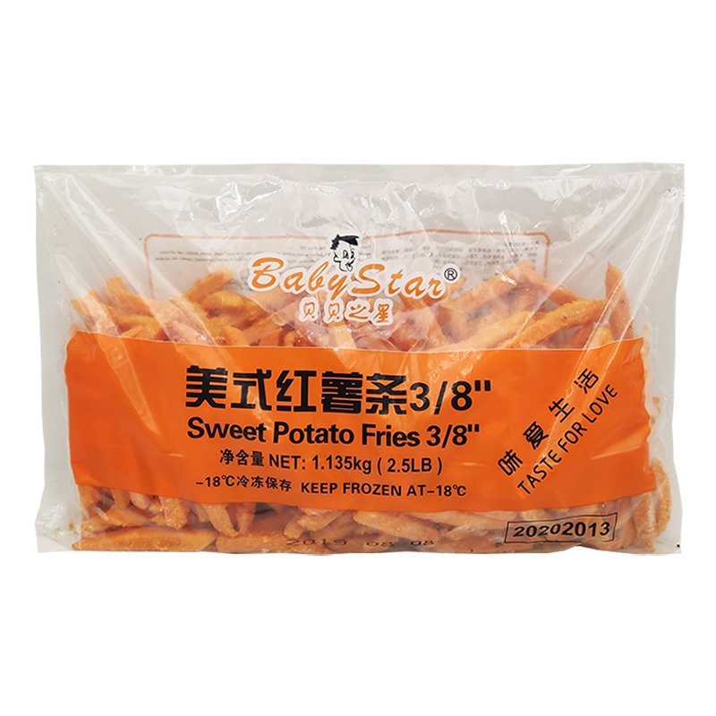 Bebe's star American sweet potato strips 1135 kg raw frozen and sweet fries fried and baked 3 8 coarse fries