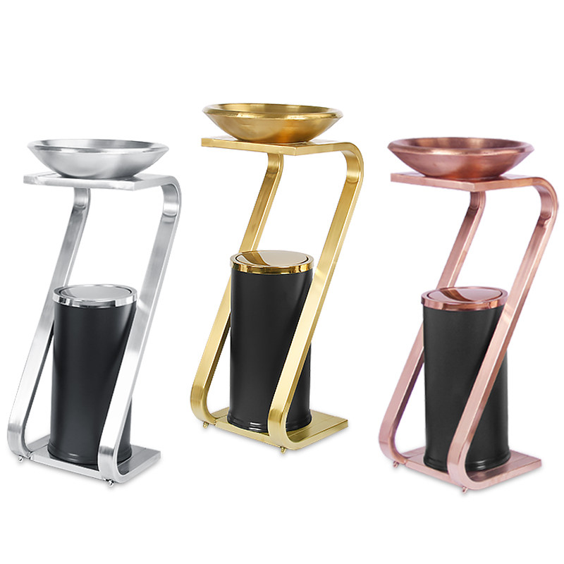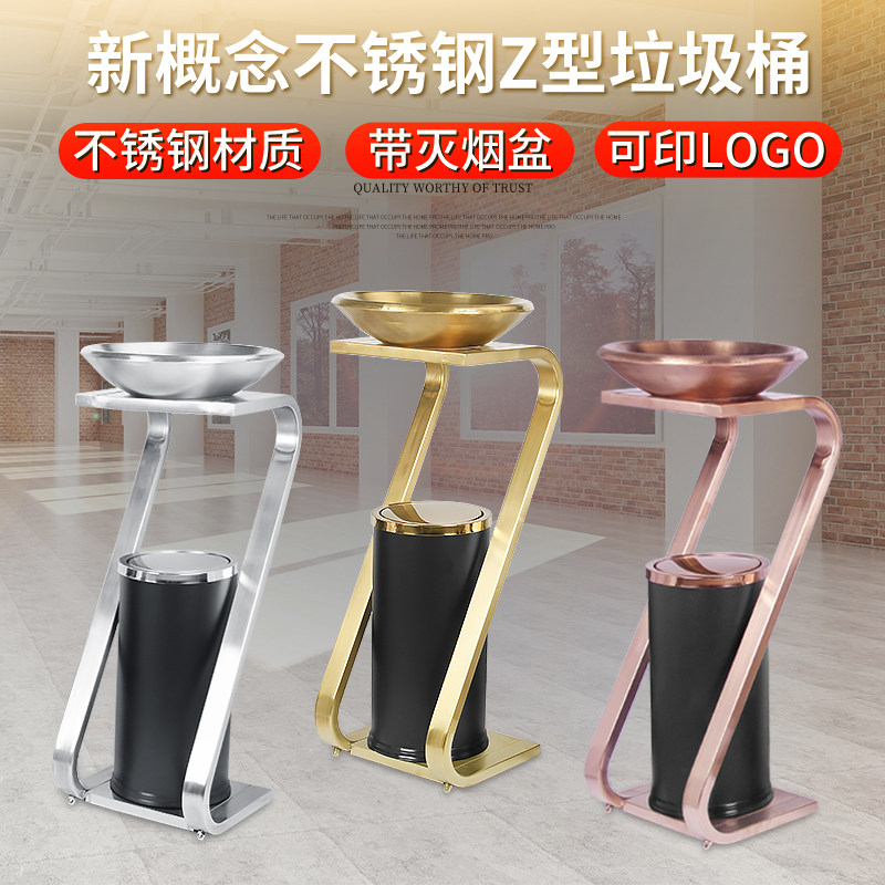 Stainless steel trash bin Hotel lobby vertical indoor corridor ktv hotel elevator with ashtray dustbin