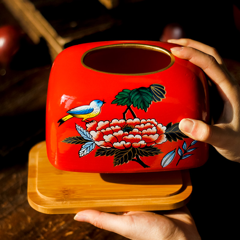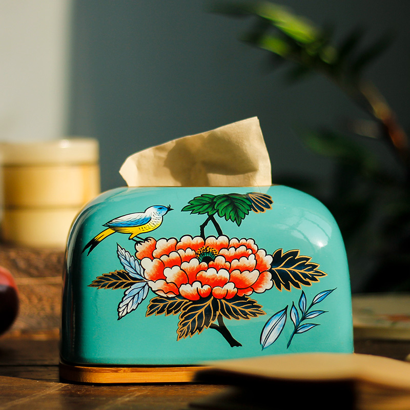 Ceramic desktop tissue box new Chinese-style living room toilet paper box high-end coffee table light luxury decoration dining table small creative
