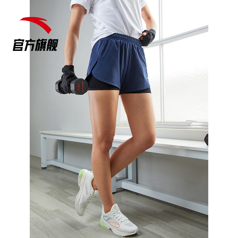 Anta moisture-absorbing quick-drying technology professional sports shorts women's fake two pieces of anti-light fitness running outside wearing breathable