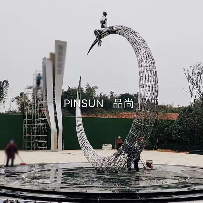 Iron Art Creative Metal Moon Stainless Steel Custom Large Hollow Sculpture Square Garden Landscape City Decoration