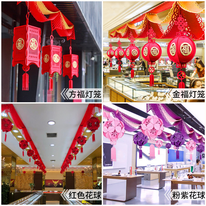 New Year Fuzi Palace Lantern Chinese New Year Spring Festival Lantern Shop Event Decoration Hanging Shopping Mall Event Ribbon Scene Layout