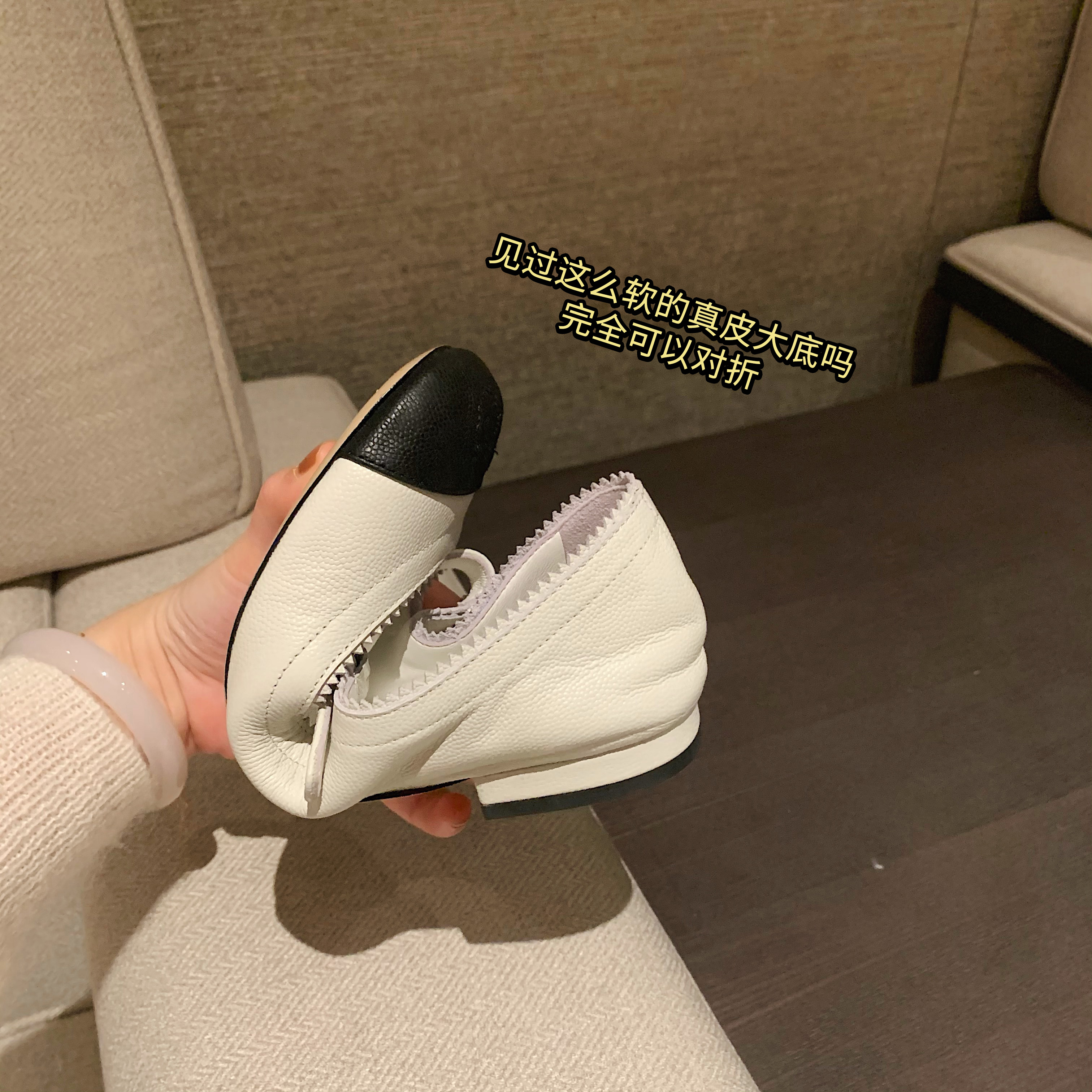 (benefanfan) camellia leather soft bottom Anna with the same flat doll shoes round toe pumps women