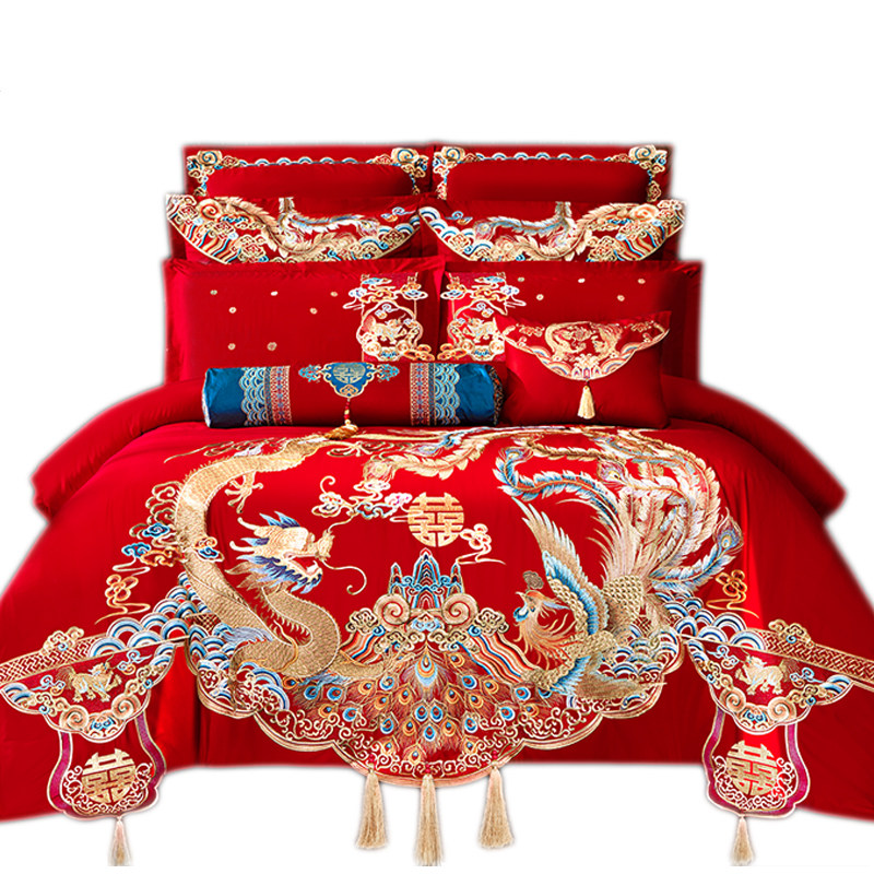 Wedding with four sets of large red 100s long suede cotton New wedding all-cotton Longfeng Embroidered Wedding pure cotton bed bedding