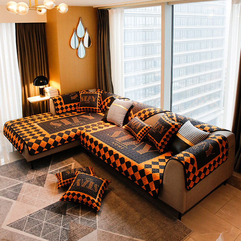 Minshun light luxury sofa cushion four seasons universal sofa cushion visit non-slip sofa cover checkerboard high-end sofa cushion