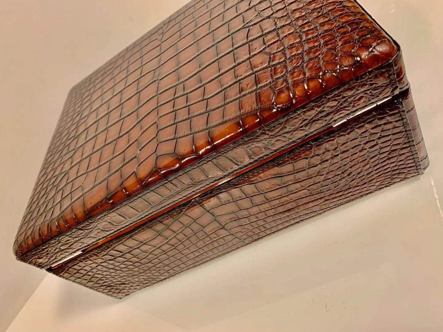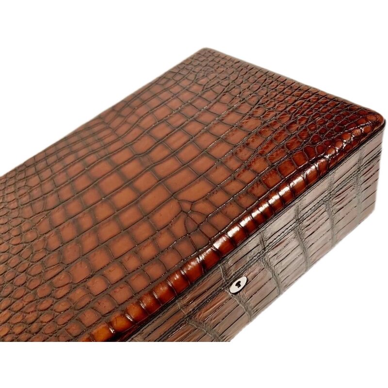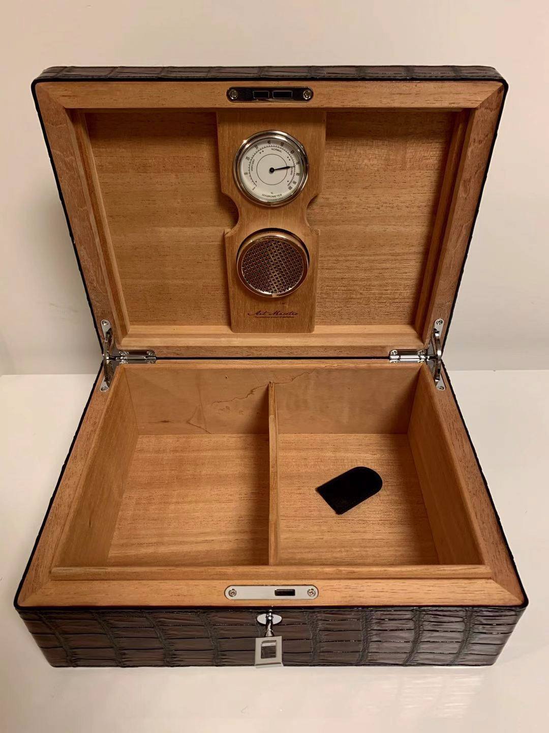 New crocodile leather cigar box wooden rubbing color large-capacity moisturizing box cedar wood humidifying business men's gift