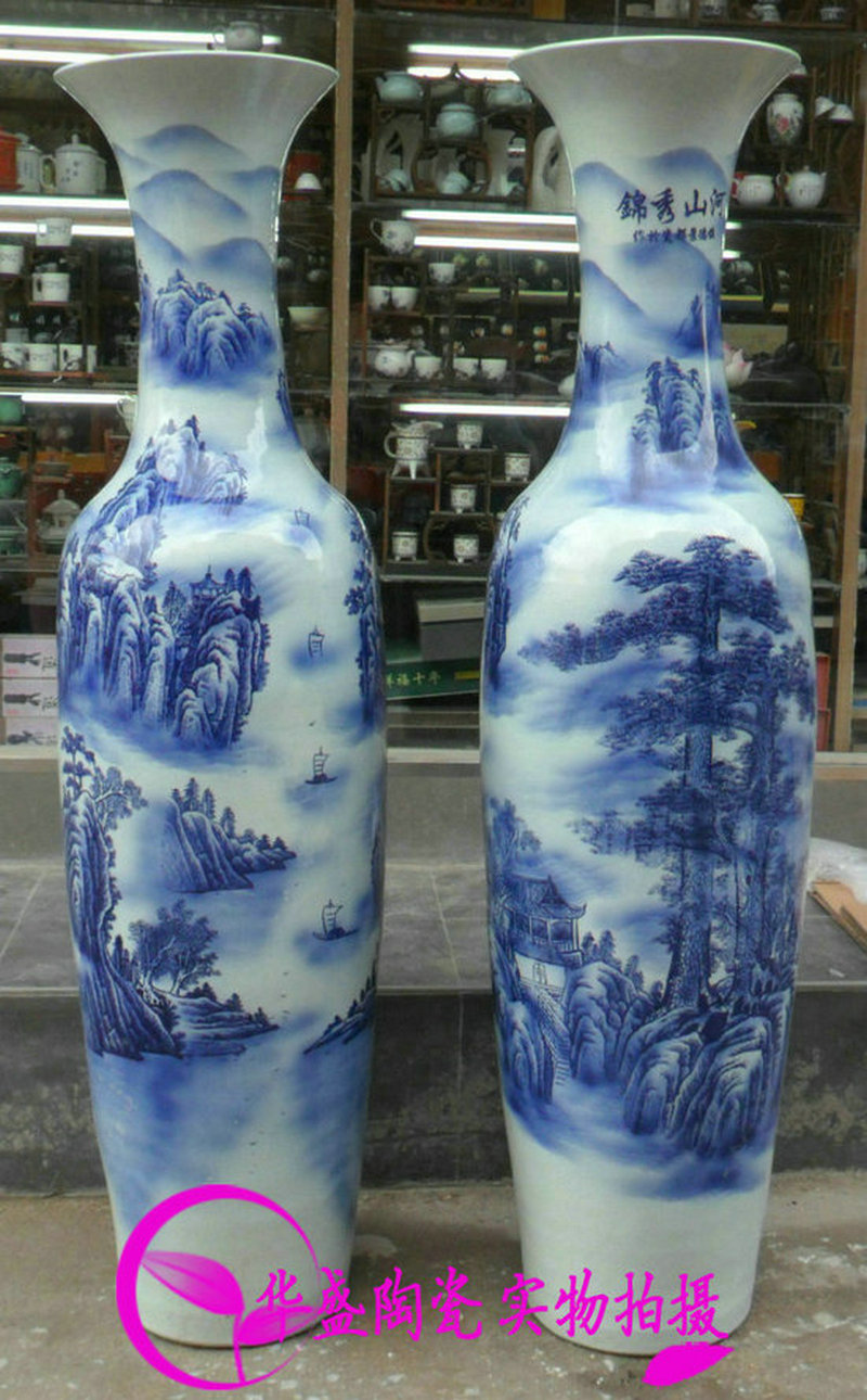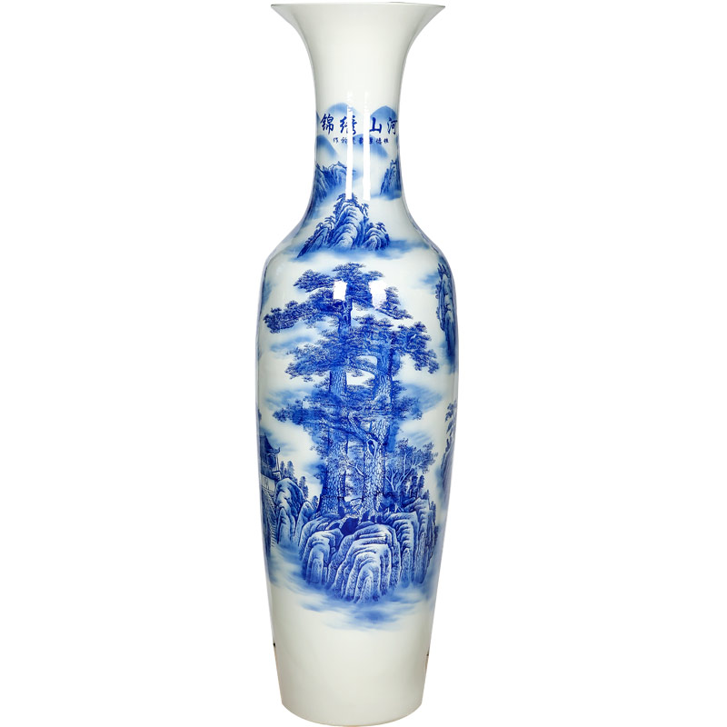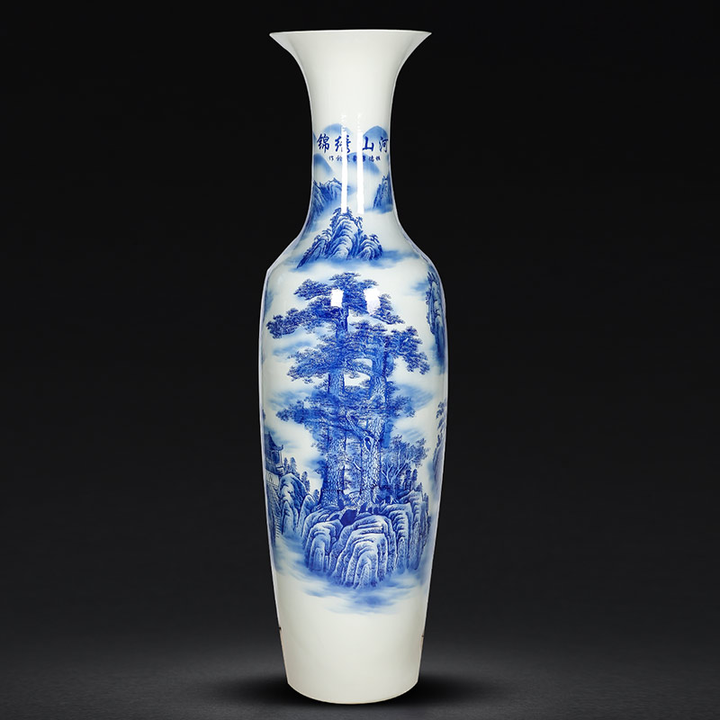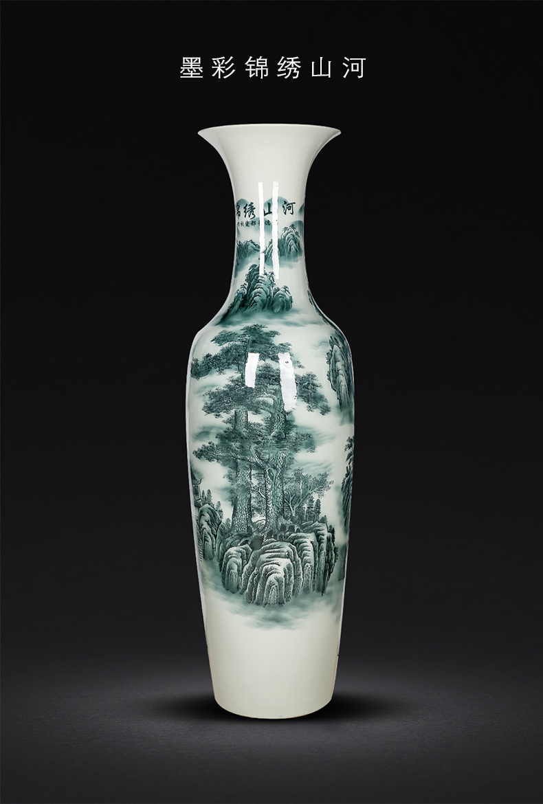 Jingdezhen Ceramics Arrival Large Vase Green Flower Porcelain Chinjin Embroidery Mountain River Landscape Hotel Living Room Company Opening Big Swing Piece