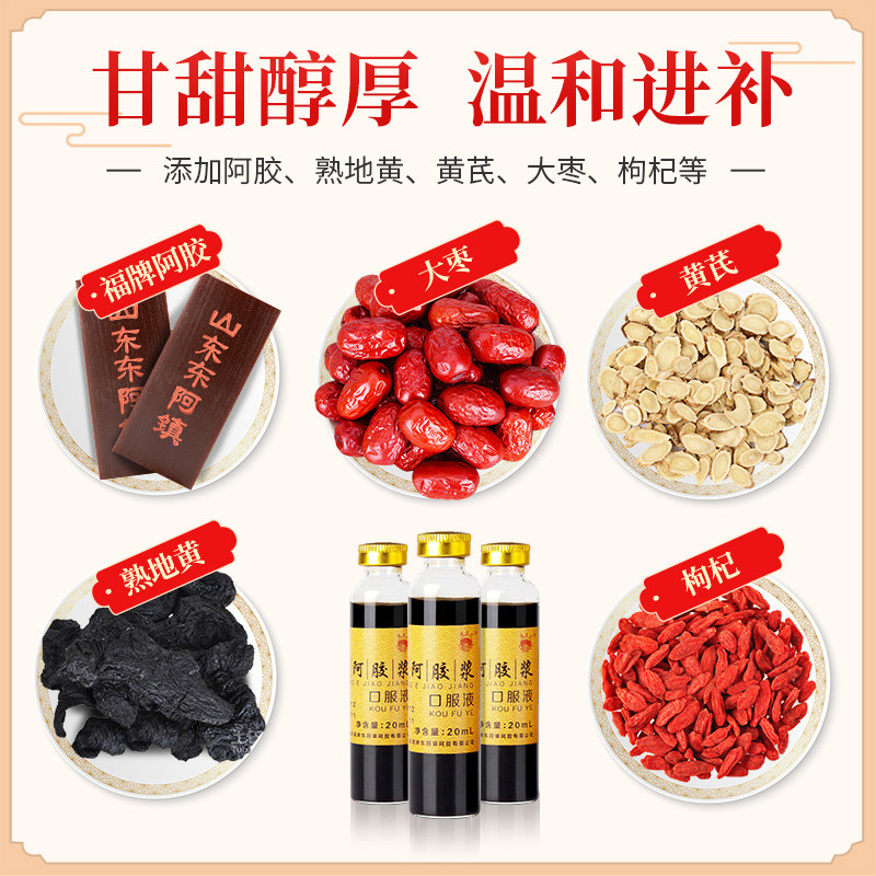 Fu brand Ejiao blood and qi oral liquid for women to improve anemia 200ml*3 boxes of nutritional products gift Ejiao paste
