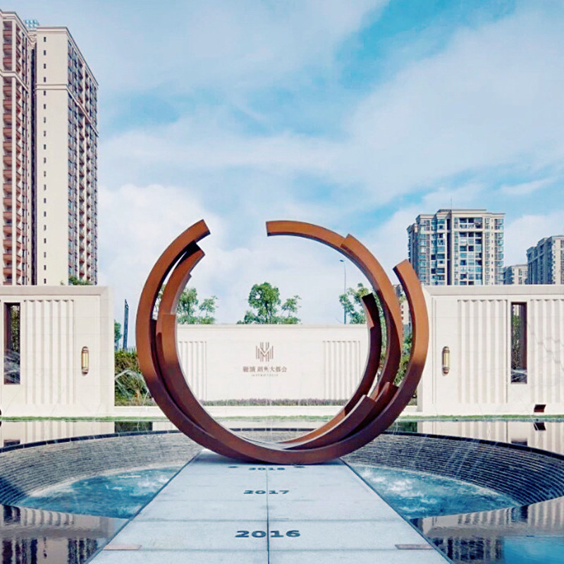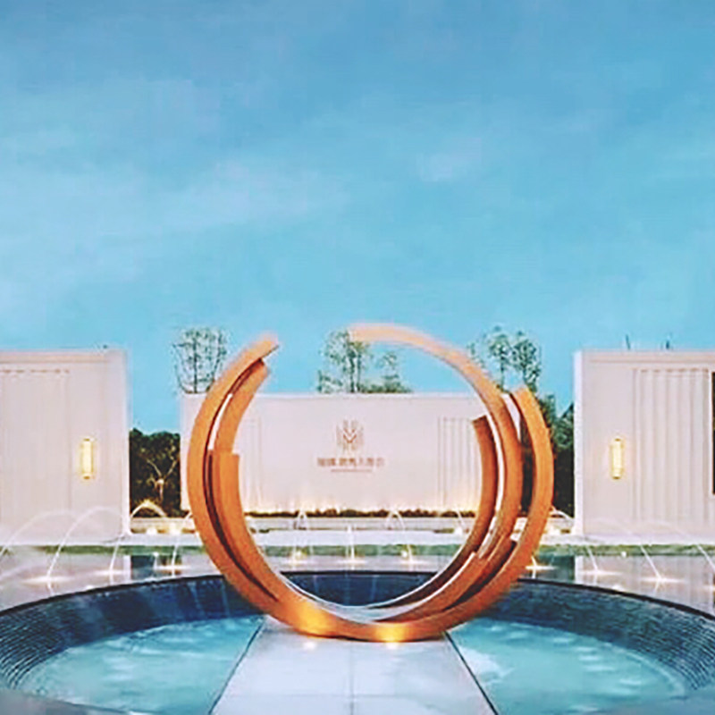 Large stainless steel mirror metal sculpture hotel square garden landscape real estate waterscape soft decoration floor ornaments
