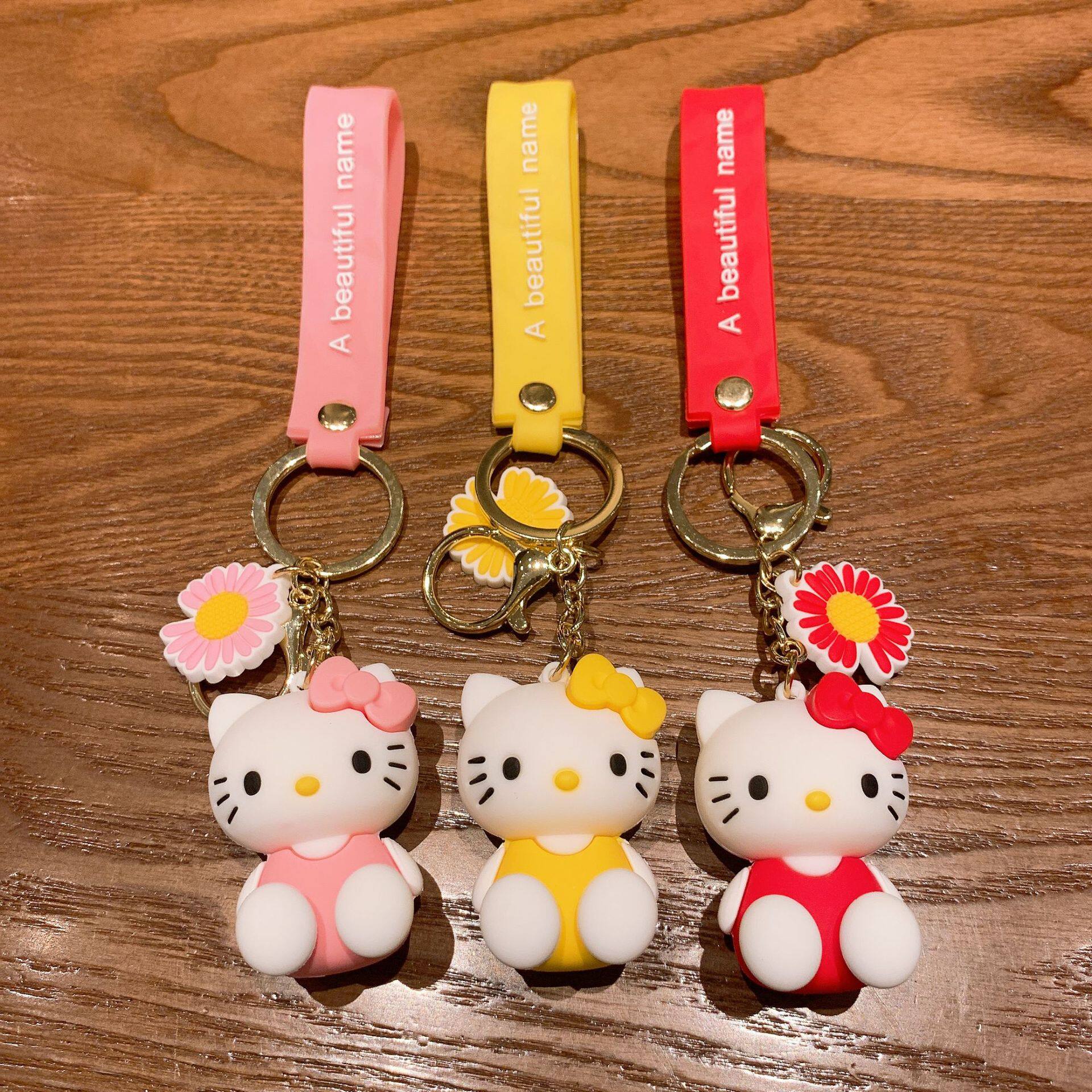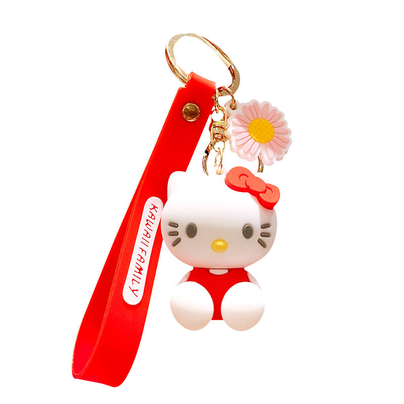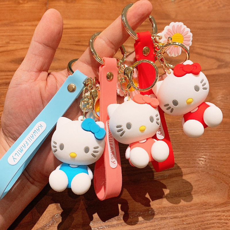 KT Cat Key Buckle Pendant Creative Cute Car Key Chain Cartoon Couple Bag Lovers Circle Rings Drop Glue Pendant