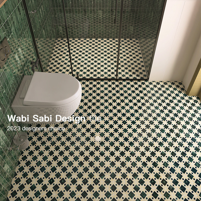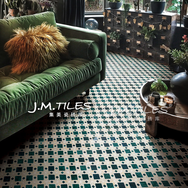 Retro dark green marble mosaic homestay bathroom balcony Hong Kong style non-slip floor tiles