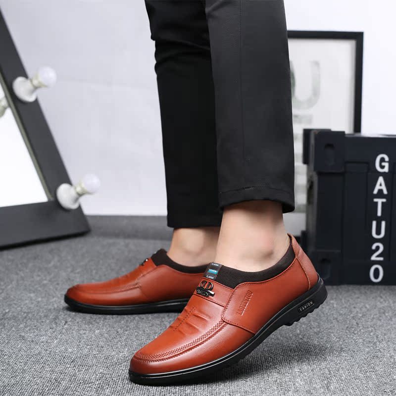 The old man's head height increase men's shoes autumn new men's casual leather shoes men's leather breathable sets of feet Korean version of the height-increasing shoes