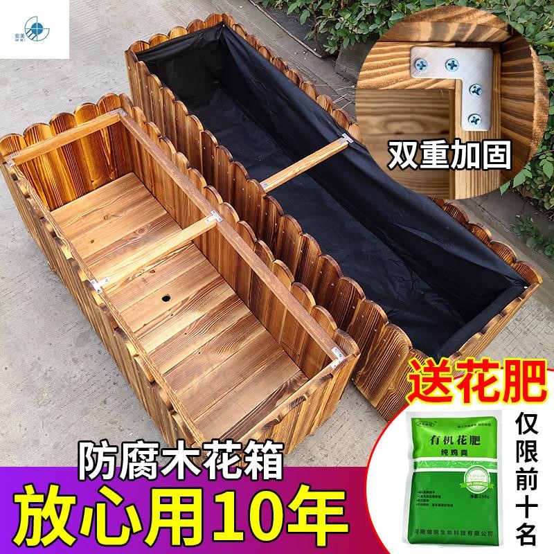 Balcony anti-corrosion wood flower box flower pot wooden heightening cultivation lengthening leak-proof soil family planting box wooden box square