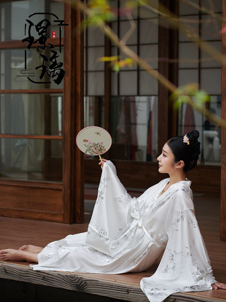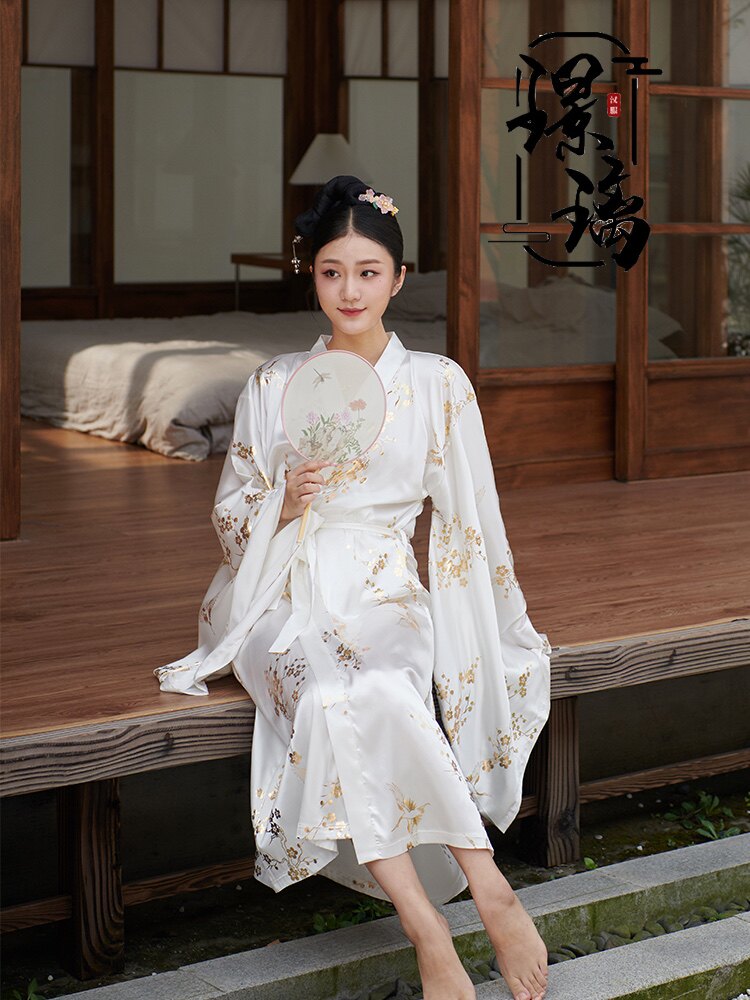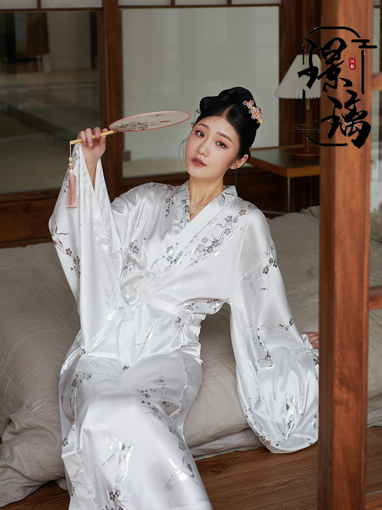 Glazed original spring summer Chinese wind sleepwear Chinese style ancient windy morning gown emulated silk loose sleepwear gowns and Han clothes bathrobe women