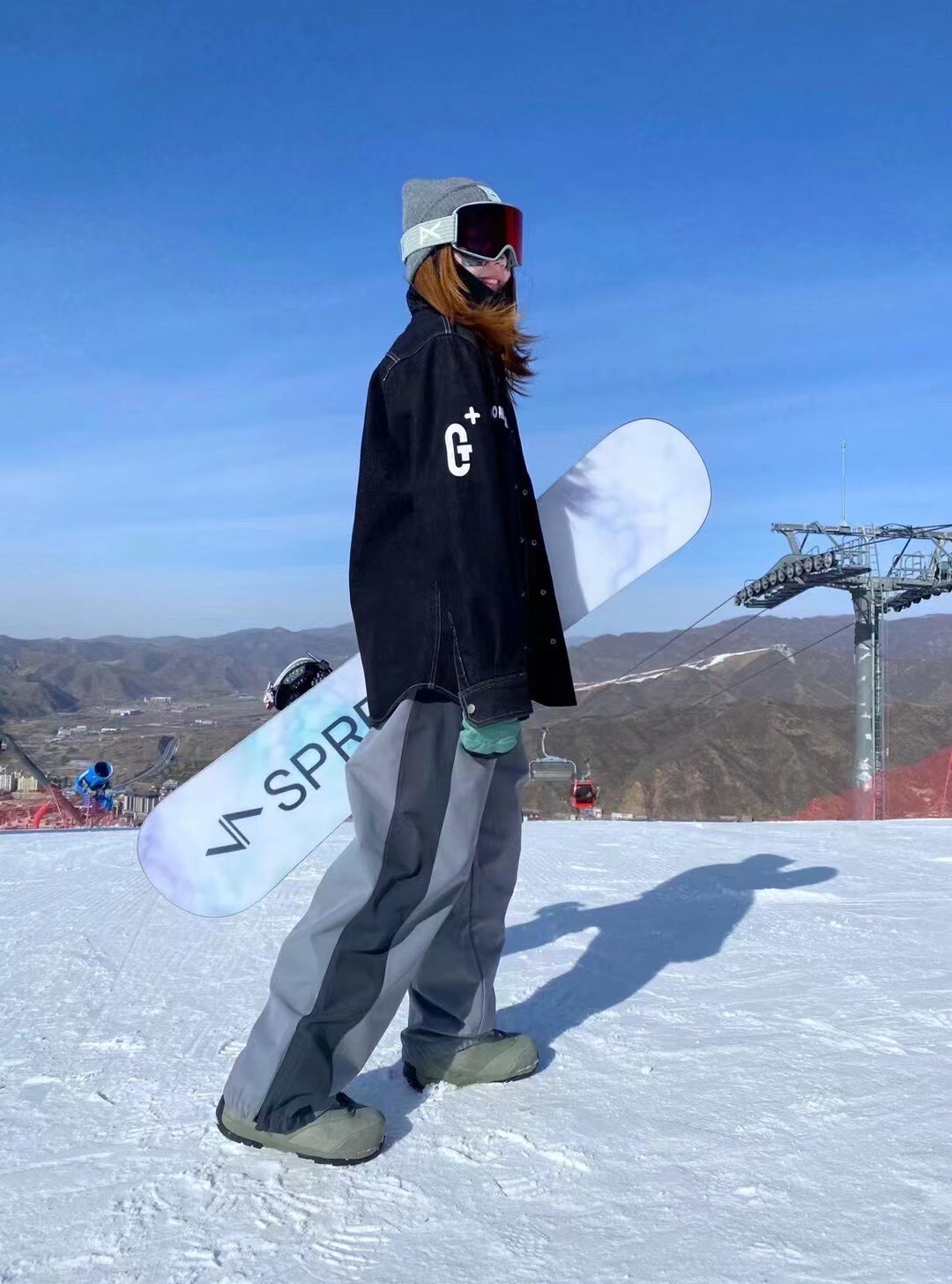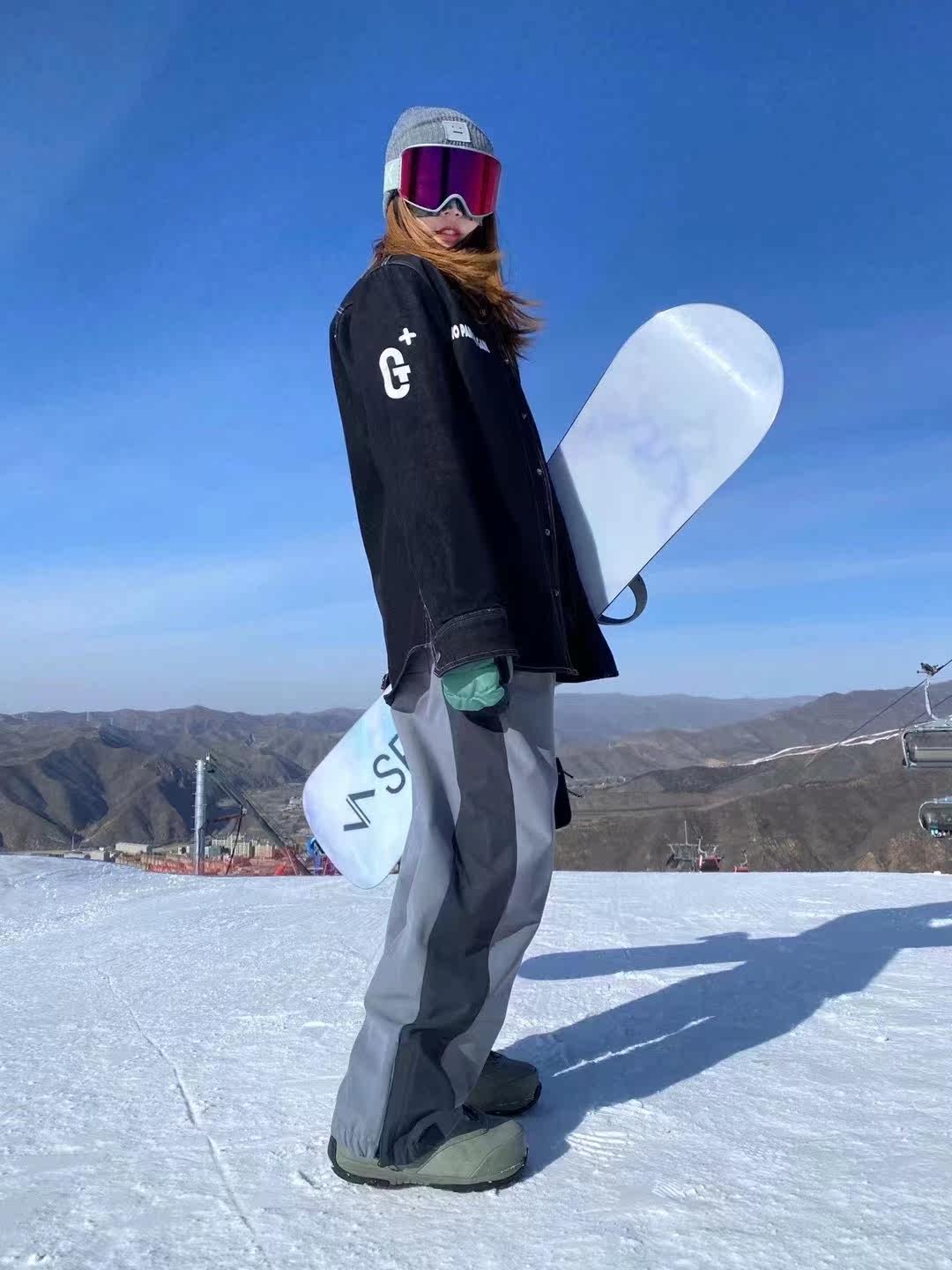 YXSS color block waterproof plus velvet straight leg ski pants for men and women outdoor sports comfortable breathable loose versatile snow pants tide