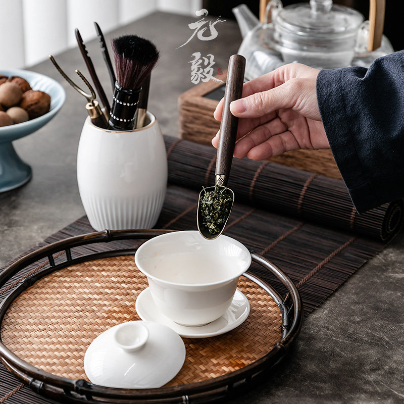 Black Honolu wood tea ceramic Sixuan Kung fu tea accessories 6 gentlemen and tea - cup knife