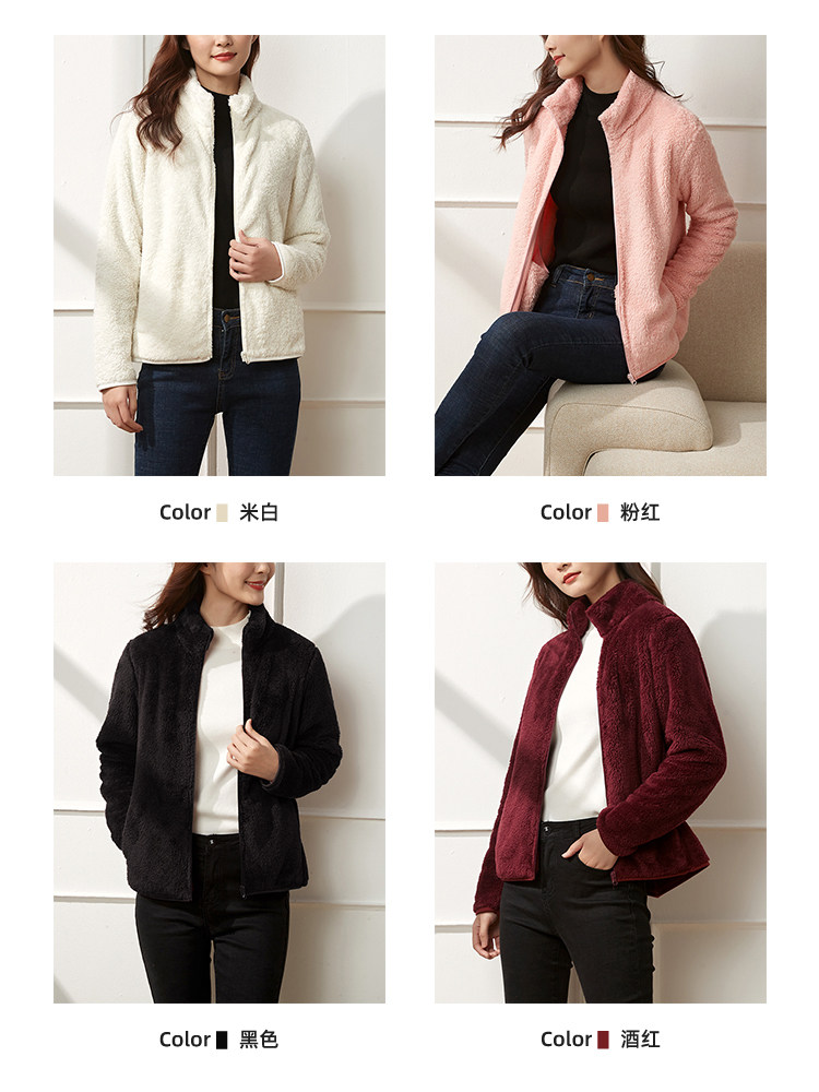 Polar fleece jacket women's spring and autumn 2021 large size loose fleece long sleeve top coral velvet zipper cardigan thick cotton T