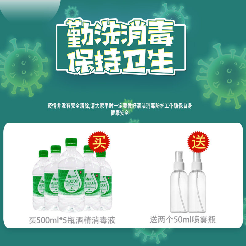 Bohen 75 degree alcohol disinfectant 500ml * 5 bottles 75% Ethanol Free to wash household cleaning and spray disinfection water