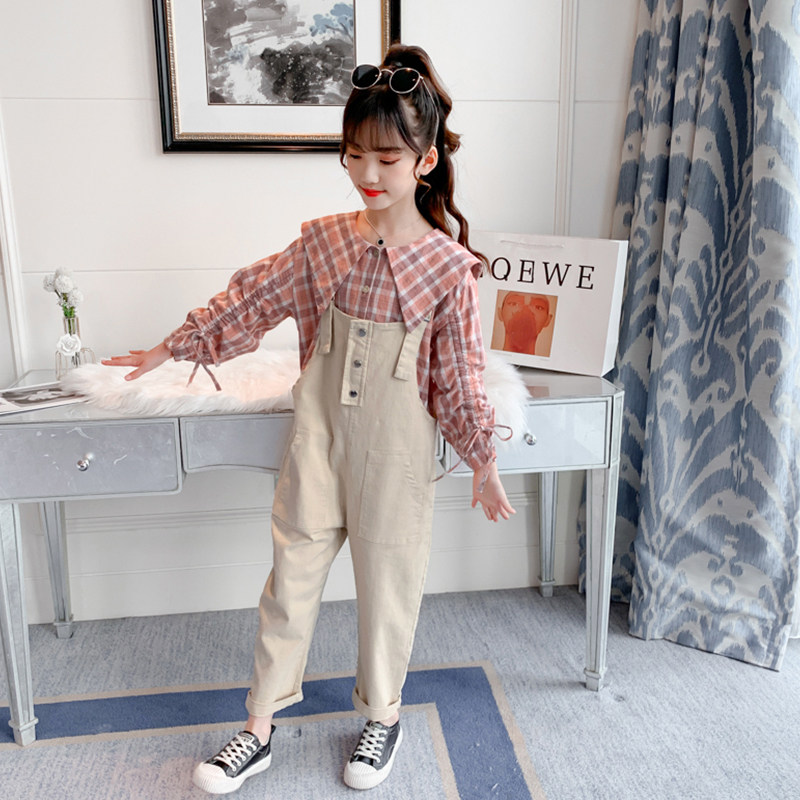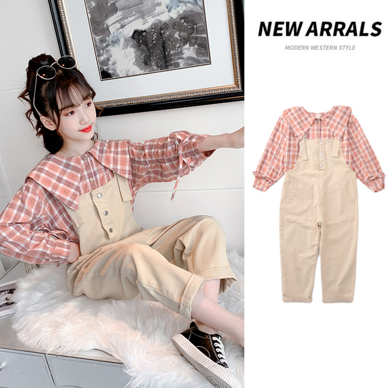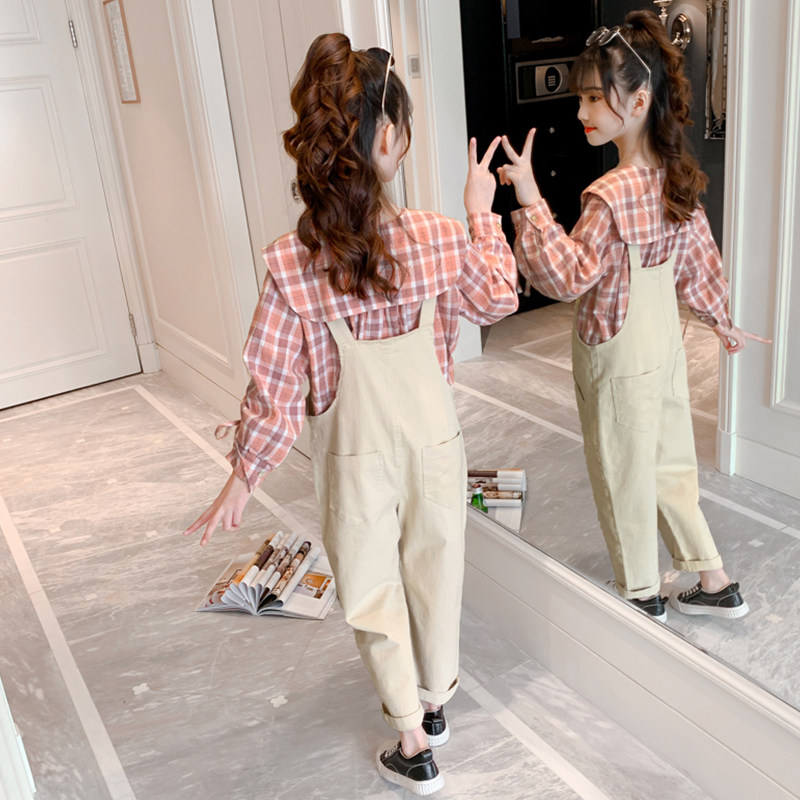Girl Cuddling Bag Pants Suit Autumn 2022 New Foreign Pie Clothes Casual Spring Autumn Nets Red Fashion Fried Street Children Autumn Clothes